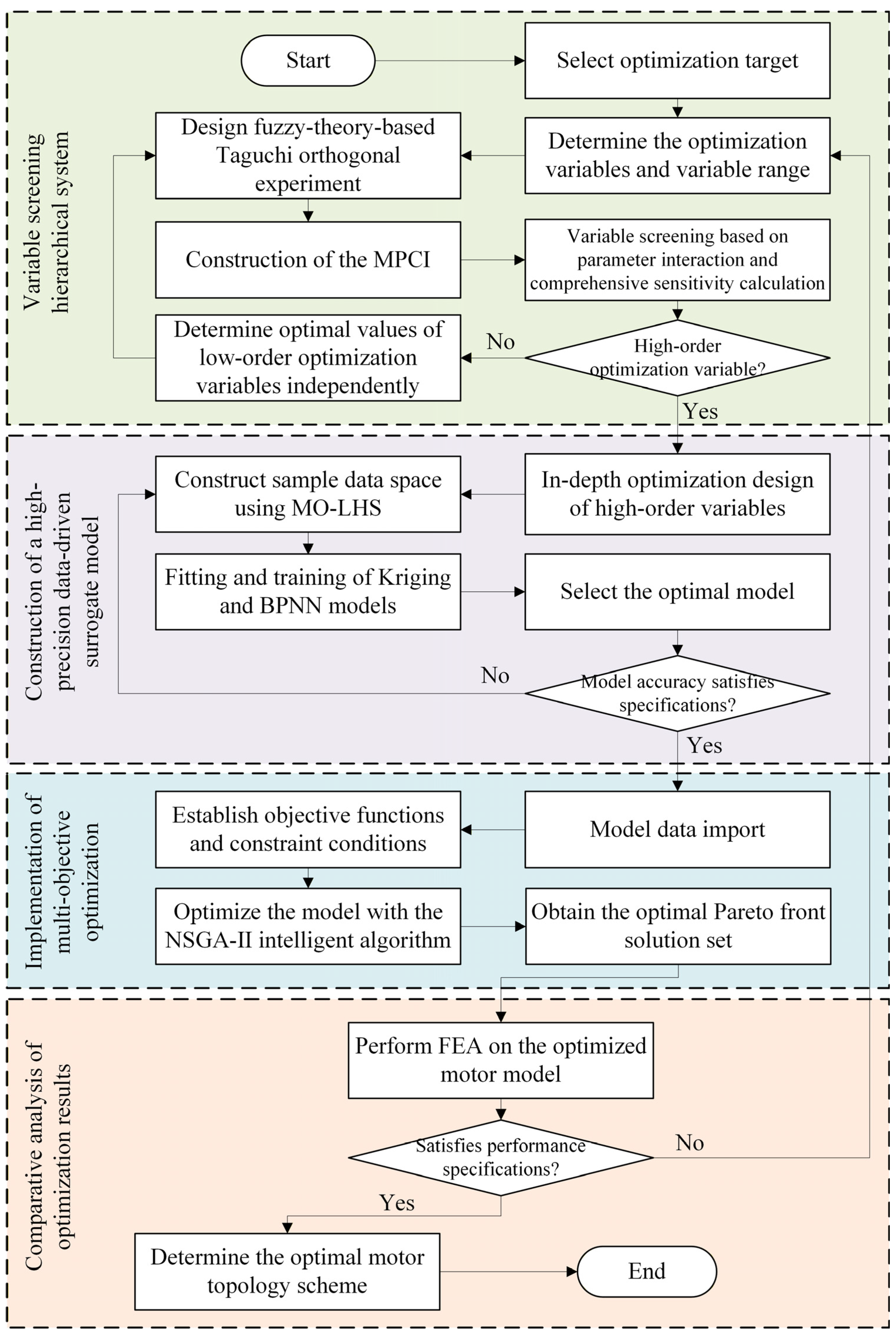 - Yu, Y.; Liang, C.; Zeng, D.; Hu, Y.; Yang, J. Multi-objective optimization of IPMSM for electric vehicles based on the combinatorial surrogate model and the hierarchical design method. Int. J. Electr. Power Energy Syst. 2024, 164, 110245. [Google Scholar] [CrossRef]