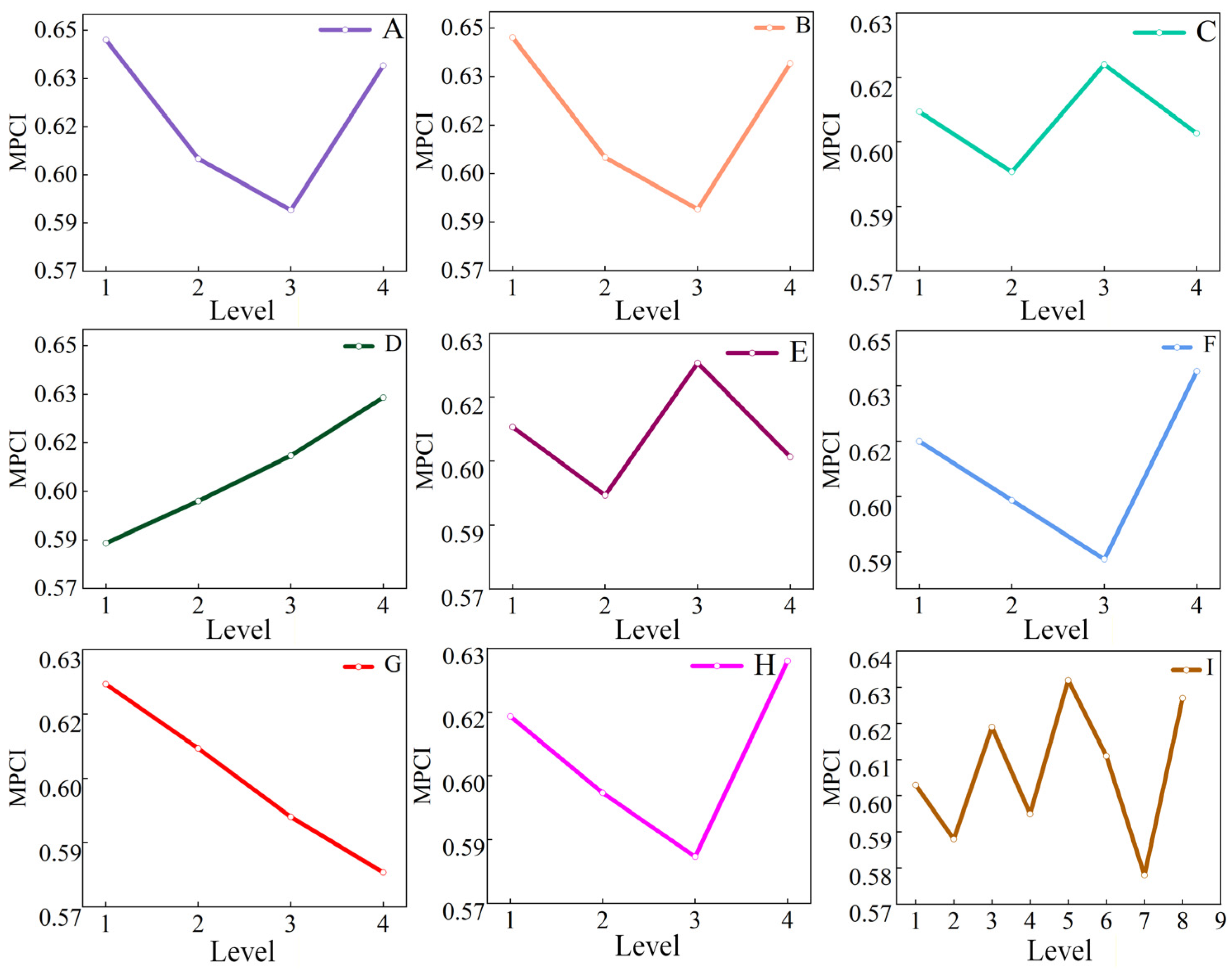 - A screening and hierarchical system for optimization variables is established to quickly distinguish significant parameters from non-significant ones. Based on the orthogonal matrix of fuzzy theory, the parameter interactivity and global sensitivity of each variable are calculated, and two low-order optimization variables are screened out. The number of variables is reduced from nine to seven, which greatly reduces the optimization cost.