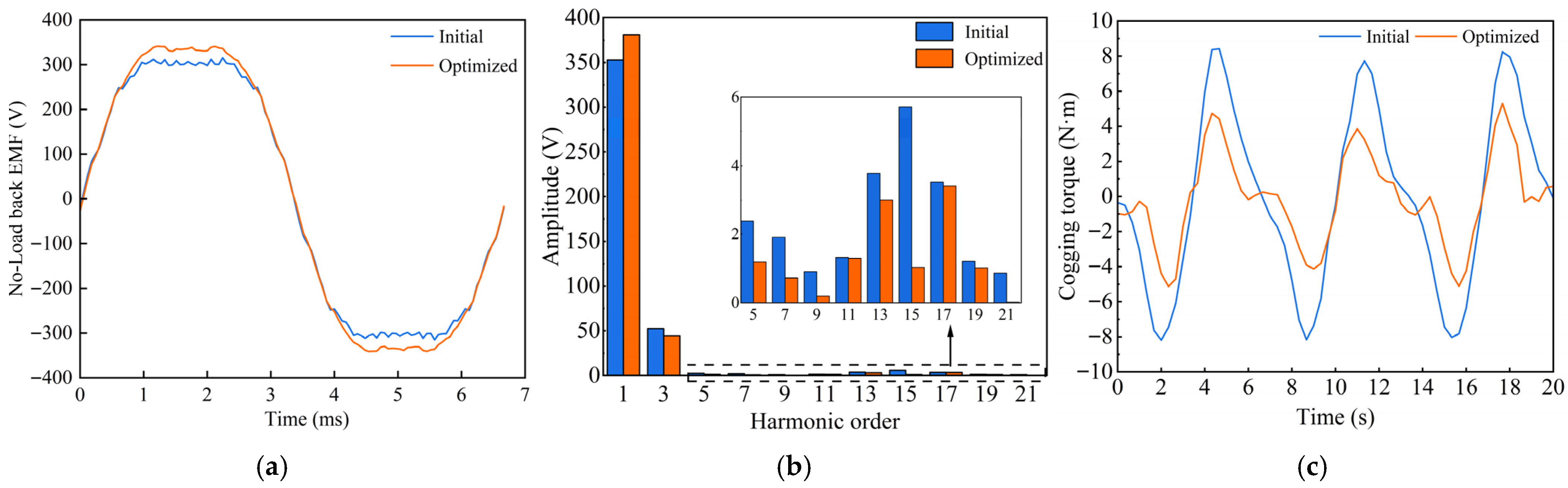 4.1. Analysis of IPMSM No-Load Performance Before and After Optimization