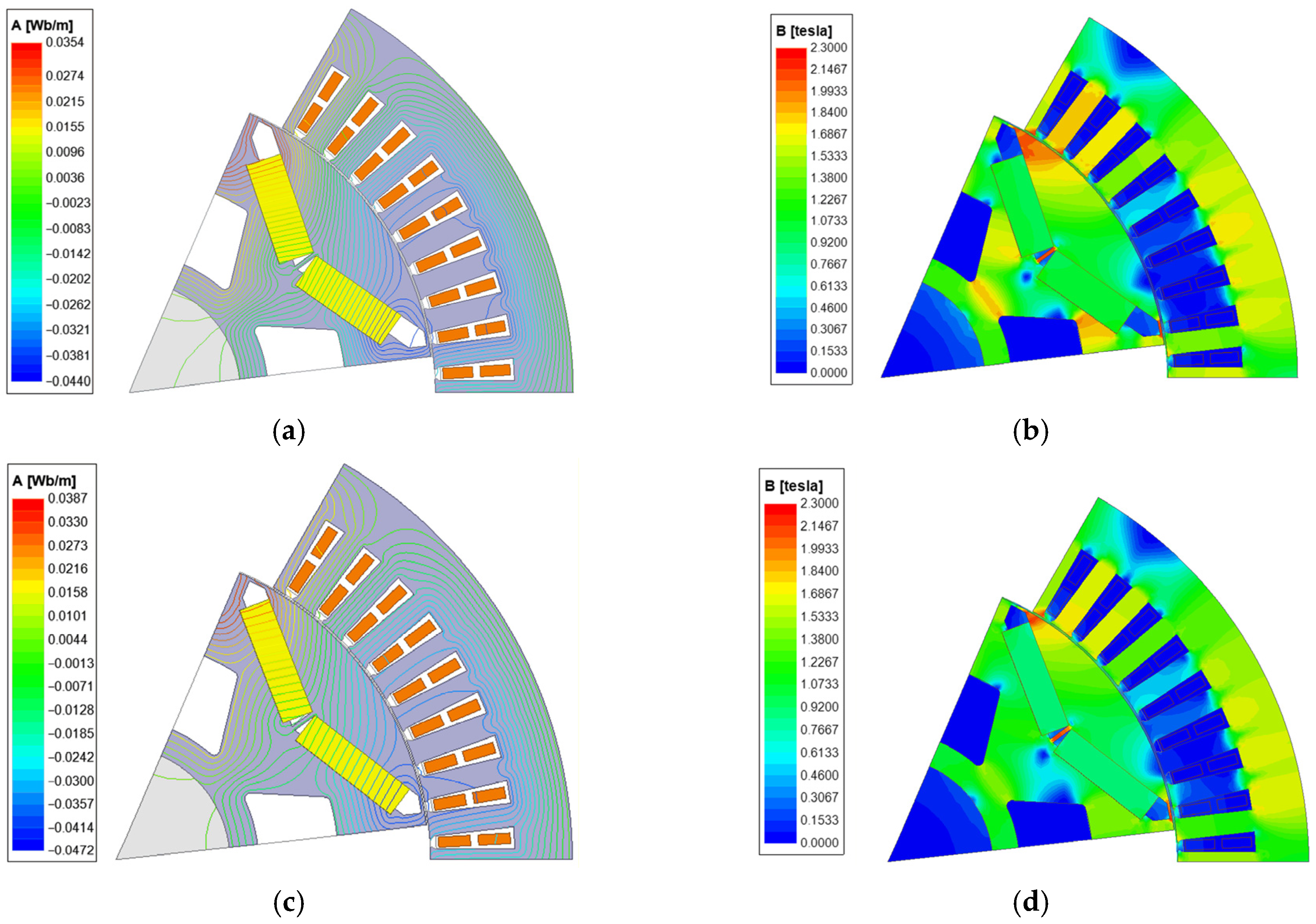 - Liu, F.; Wang, X.; Xing, Z.; Ren, J.; Li, X. Analysis and research on no-load air gap magnetic field and system multiobjective optimization of interior PM motor. IEEE Trans. Ind. Electron. 2022, 69, 10915–10925. [Google Scholar] [CrossRef]