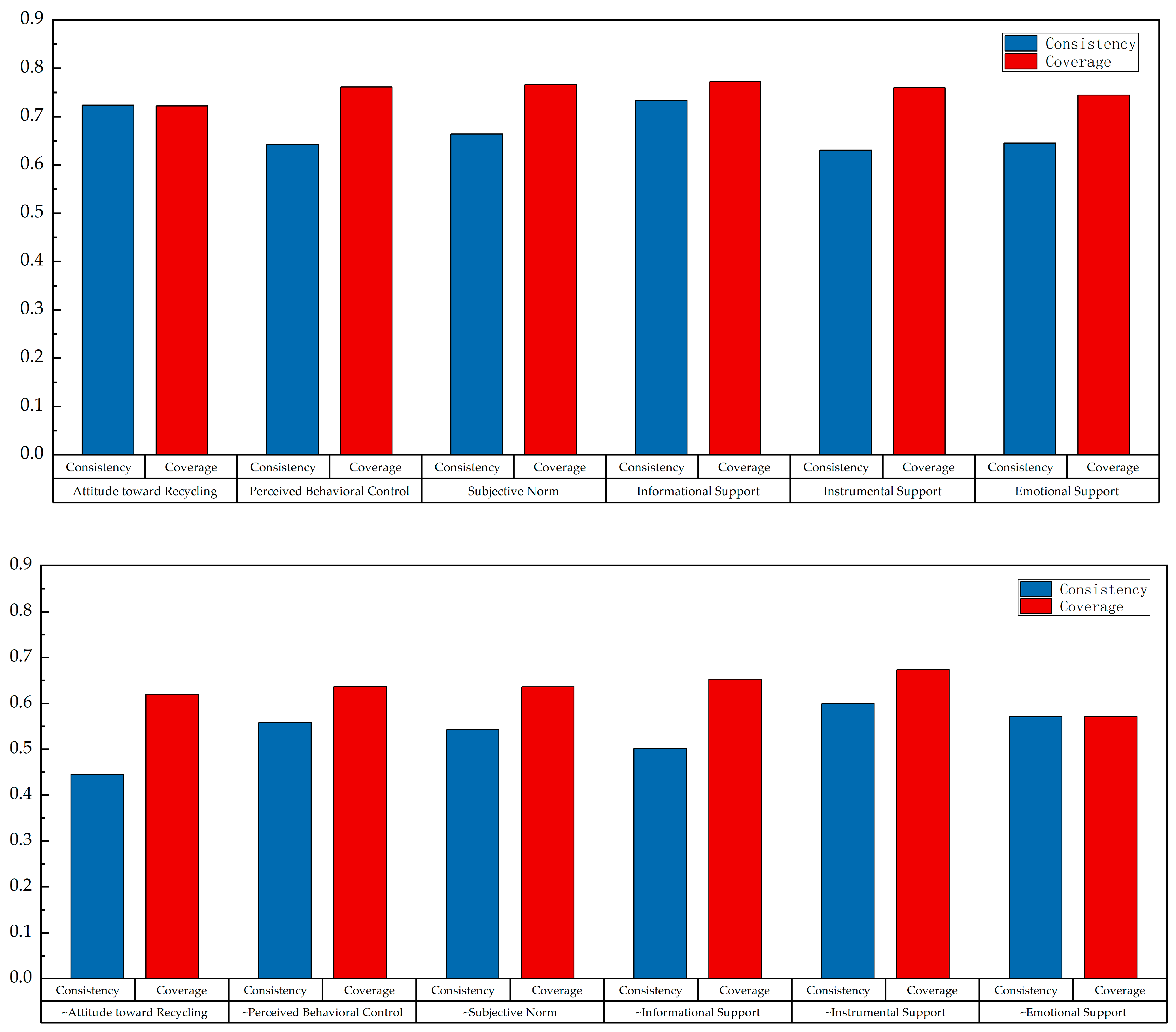 | Attitude toward Recycling | 0.7233 | 0.7219 | Informational Support | 0.7338 | 0.7719 |