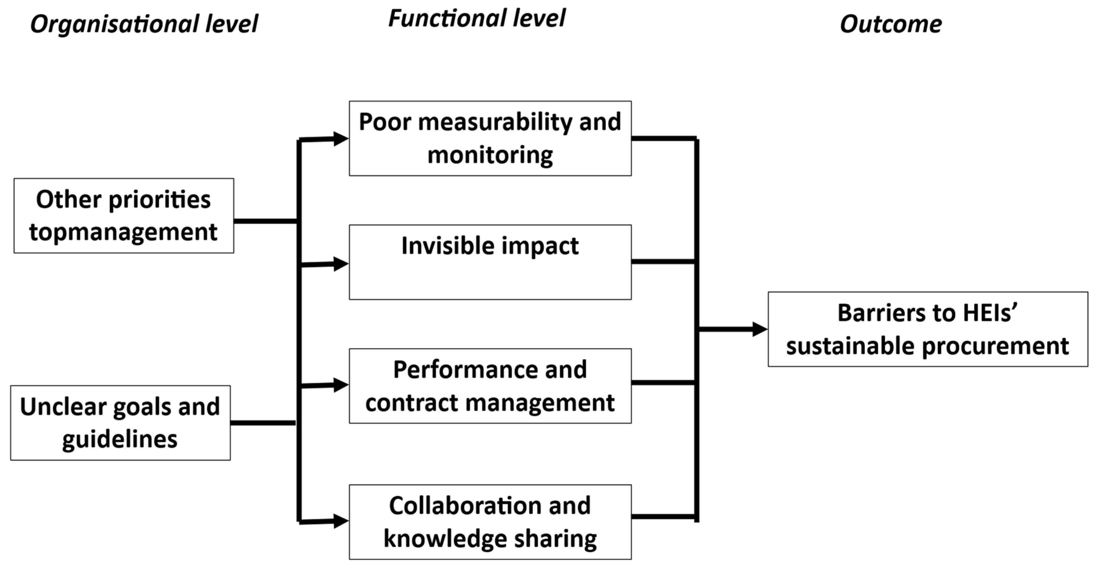 Chicago/Turabian StyleKibbeling, Mirjam, Cees J. Gelderman, Wendy Broers, Alex De Vries, Joris Van Heeringen, and Karin van IJsselmuide. 2026. "Barriers to Sustainable Procurement in Dutch Higher Education Institutions" Sustainability 18, no. 4: 1722. https://doi.org/10.3390/su18041722