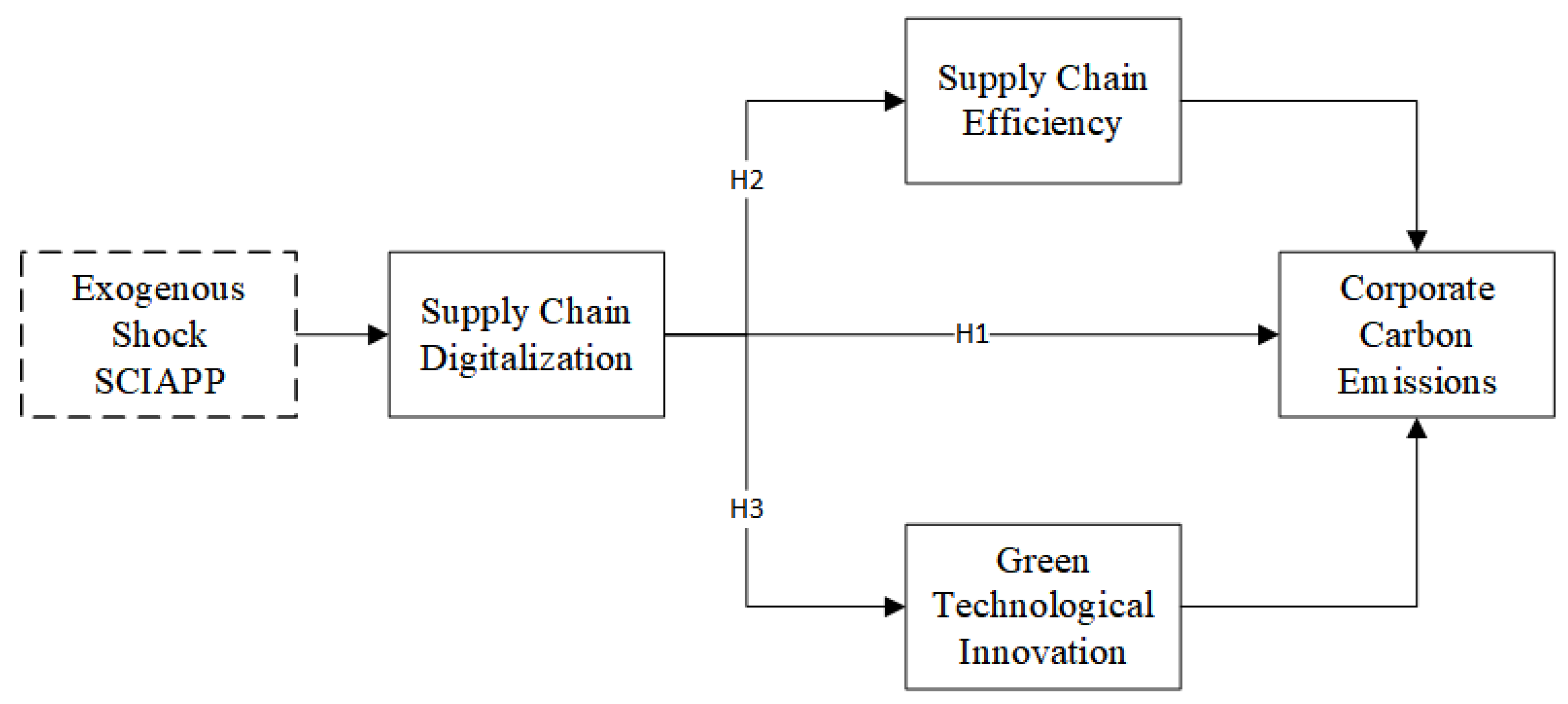 - In terms of its institutional context, this study used the implementation of the SCIAPP as a quasi-experimental setting. It pioneers the analysis of the effects of policy shocks on corporate supply chain digitalization processes to verify the carbon reduction effects driven by policy interventions. This adds to the discussion raised by Song et al. [18] on whether institutional arrangements influence digitalization-driven emissions reductions, providing micro-level evidence on the policy–firm–carbon emissions relationship within China’s institutional framework.