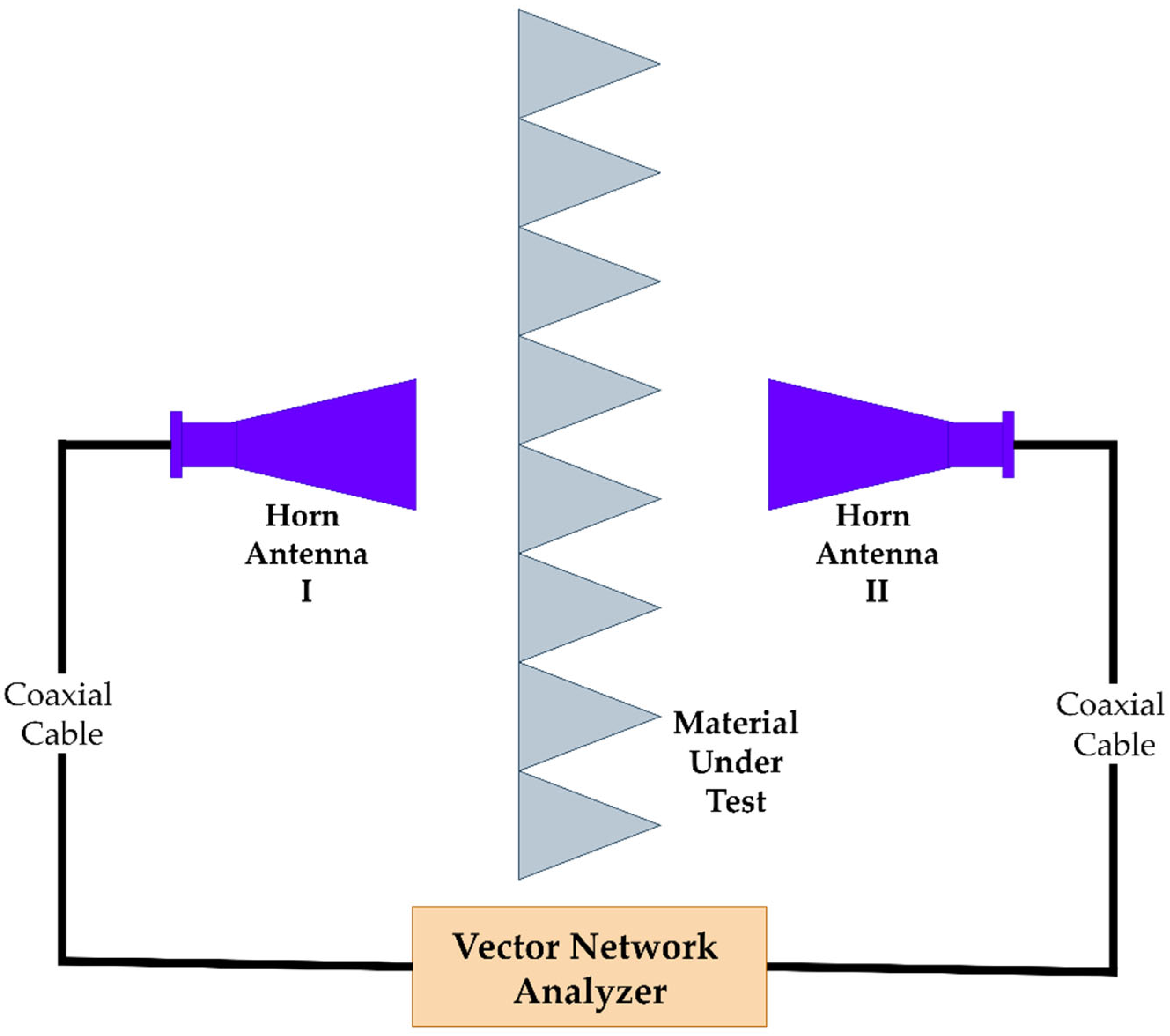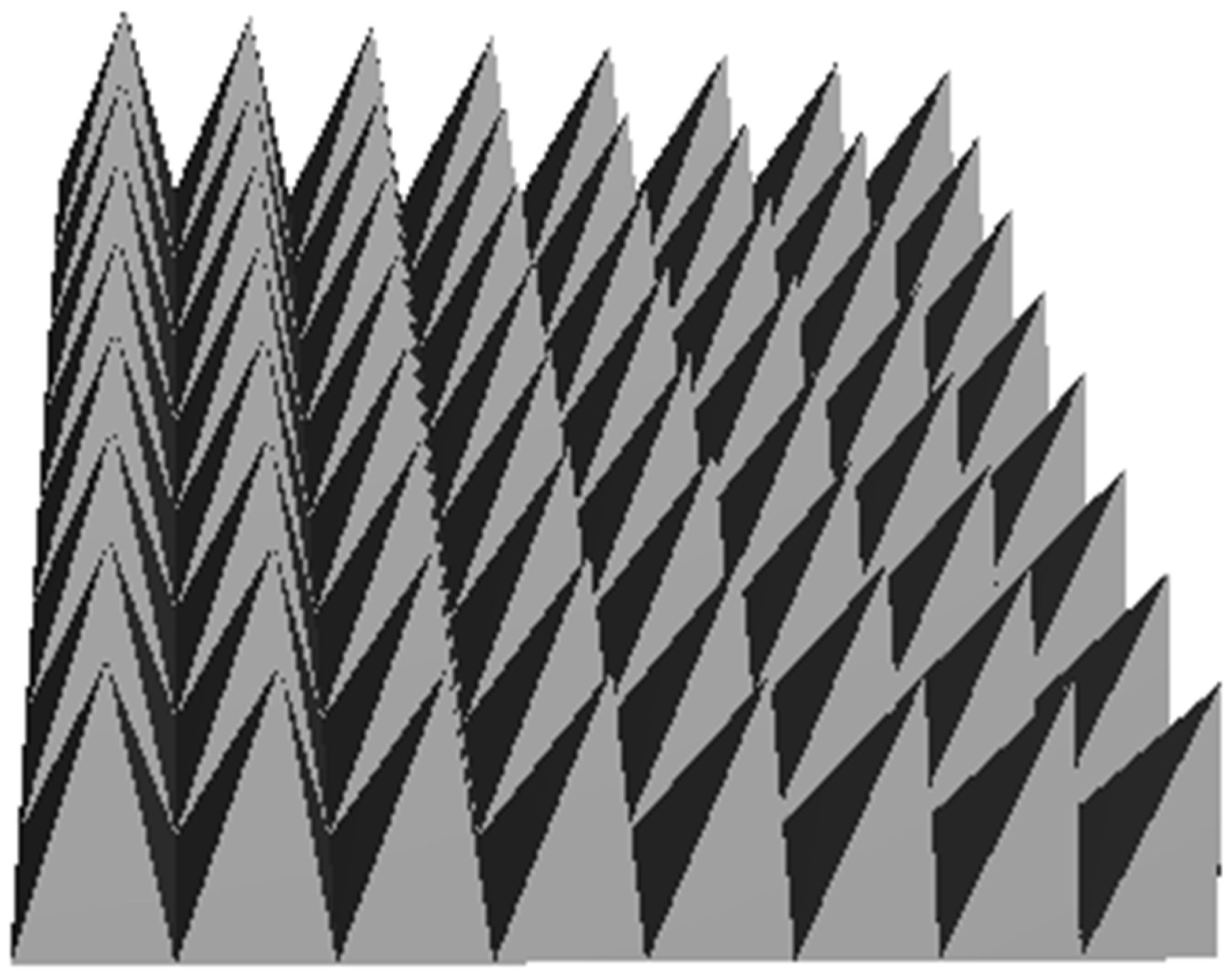 - Nornikman, H.; Soh, P.J.; Azremi, A.A.H.; Anuar, M.S. Performance Simulation of Pyramidal and Wedge Microwave Absorbers. In Proceedings of the 2009 Third Asia International Conference on Modelling & Simulation, Bundang, Indonesia, 25–29 May 2009; IEEE: Washington, DC, USA, 2009. [Google Scholar]