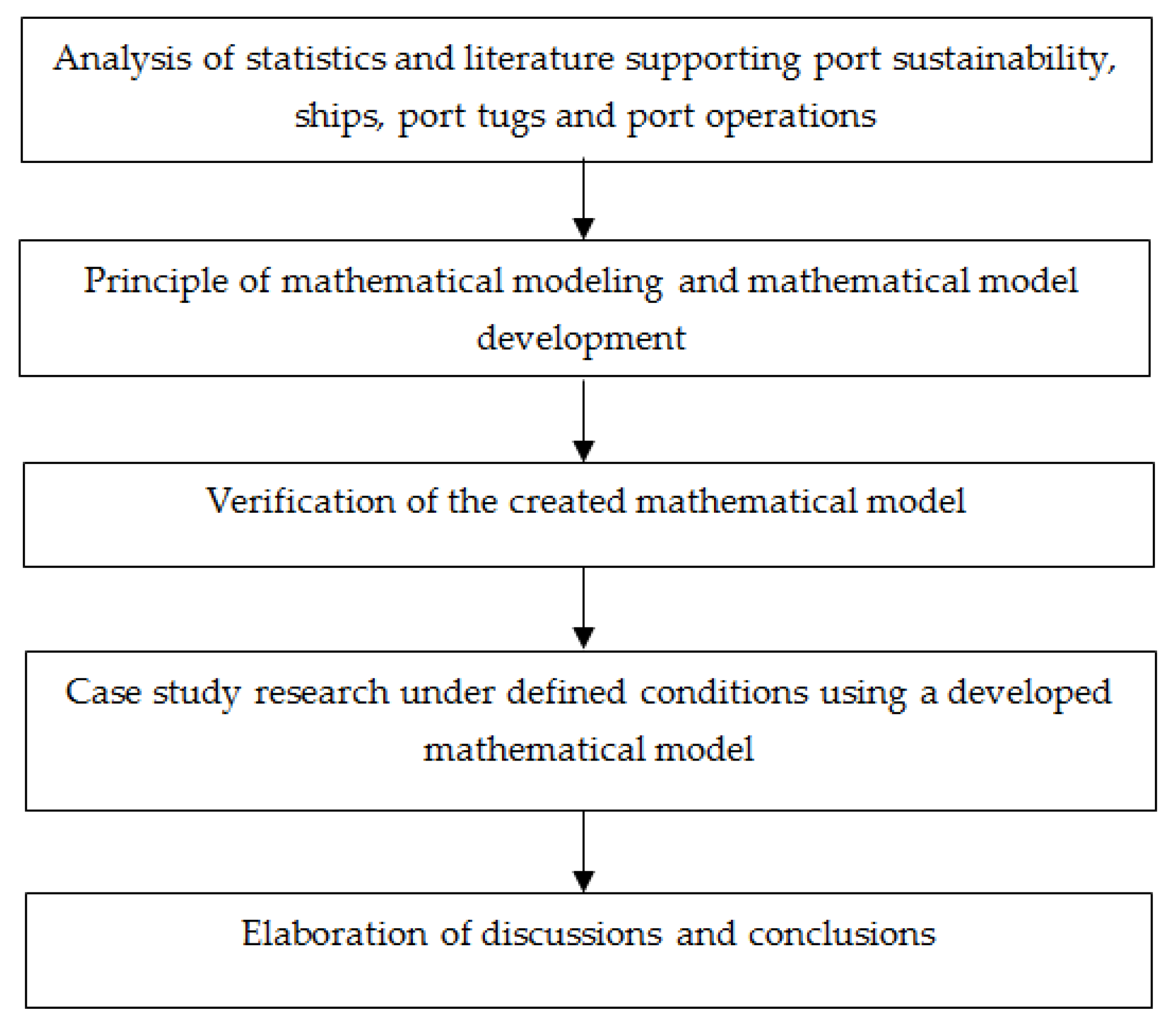 When developing a mathematical model for assessing port sustainability, it is first necessary to collect a port database based on statistics and literature analysis of port operations of ships, port tugs and environmental impact. Based on the collected database and acceptable mathematical research methods, a principle for developing a mathematical model is created. Using the principle for developing a mathematical model and the collected database, a primary mathematical model for assessing port sustainability is created. The created primary mathematical model is verified using the results of experiments related to real port activities, ships, port tugs and port operations and environmental impact. Based on the results of the verification of the primary mathematical model, the created primary mathematical model is corrected, a final mathematical model is created and with its help the obtained port sustainability assessment results are verified (