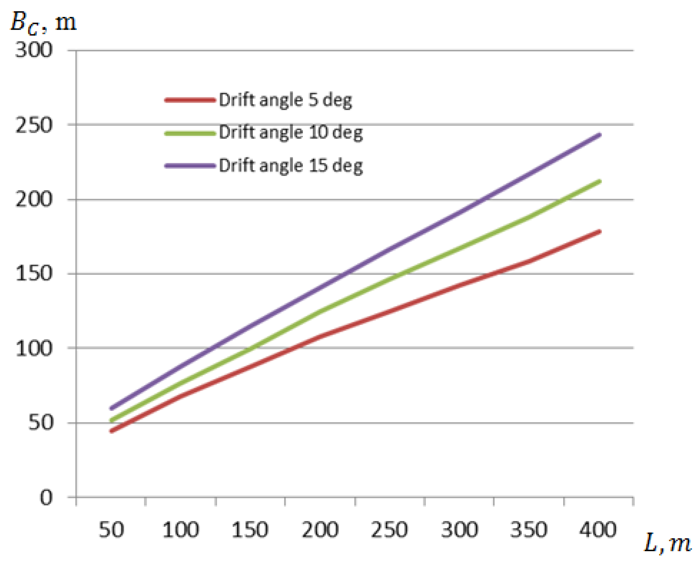 Section 3 (using the results of calculations and experiments) and assuming that the ship’s drift angle reached up to 4°, the ship’s yaw angle reached up to 2°, the accuracy of determining the ship’s location with the help of a lead line was about 8 m. Assuming a probability of 95% and a navigation margin of 0.5 B, the calculated width of the port entrance channel was obtained to be about 125 m.