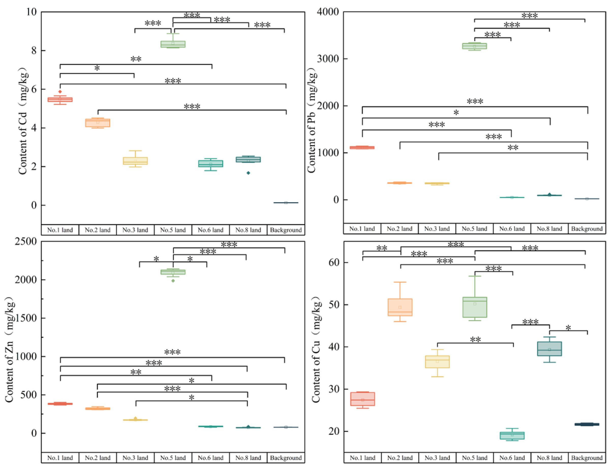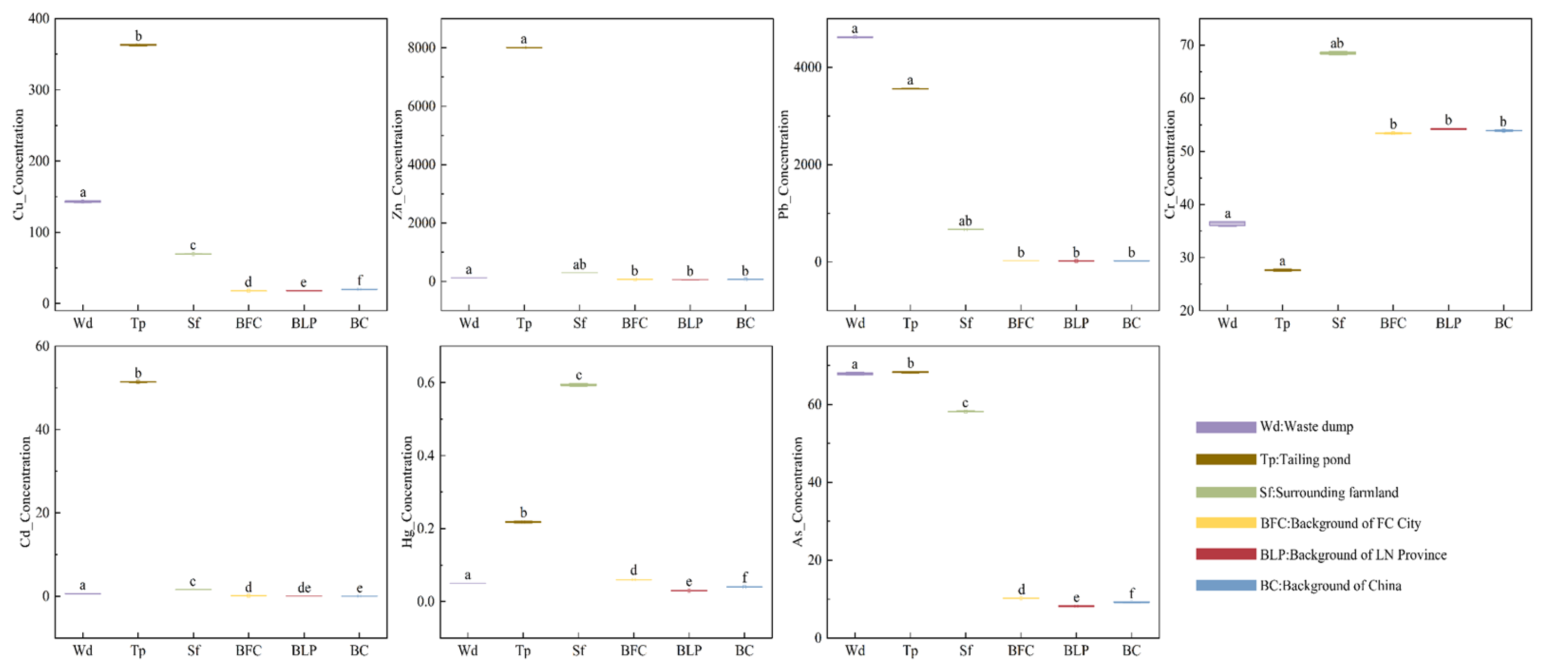 - Ma, Y.; Xing, S.; Zhang, Z.; Sun, J. Assessment of the heavy metal soil pollution in Qingchengzi Lead-zinc Mine area. Met. Mine 2010, 4, 172–175. [Google Scholar]