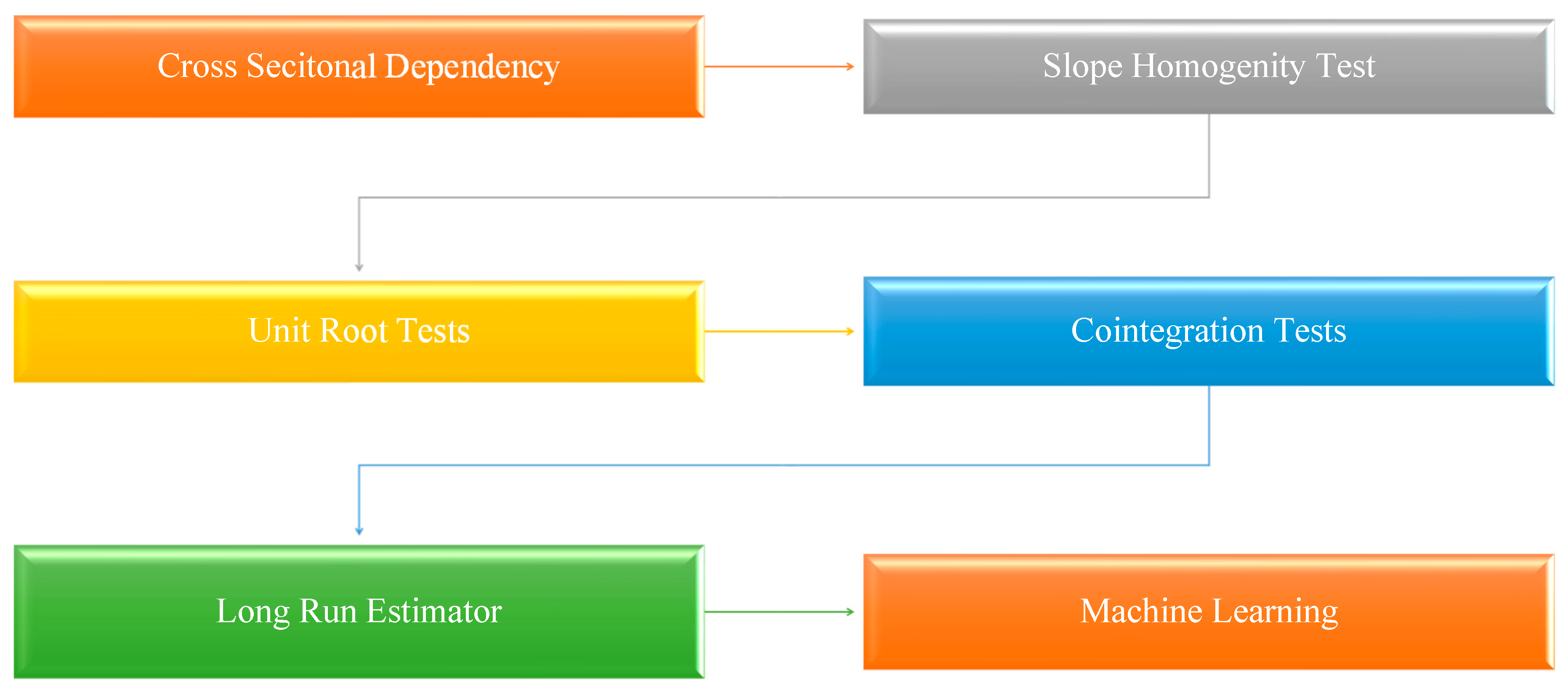 In this study, the performance of different ML algorithms in predicting the load capacity factor is compared; countries are classified as “winners” and “losers” using an ensemble decision tree model. This approach guides policymakers in developing targeted environmental policies and disseminating best practices. The combined use of panel data analysis and ML methods strengthens the methodological contribution of the study and allows for a holistic evaluation of energy, technology, economics, and environmental policies. The rest of the study is structured as follows: