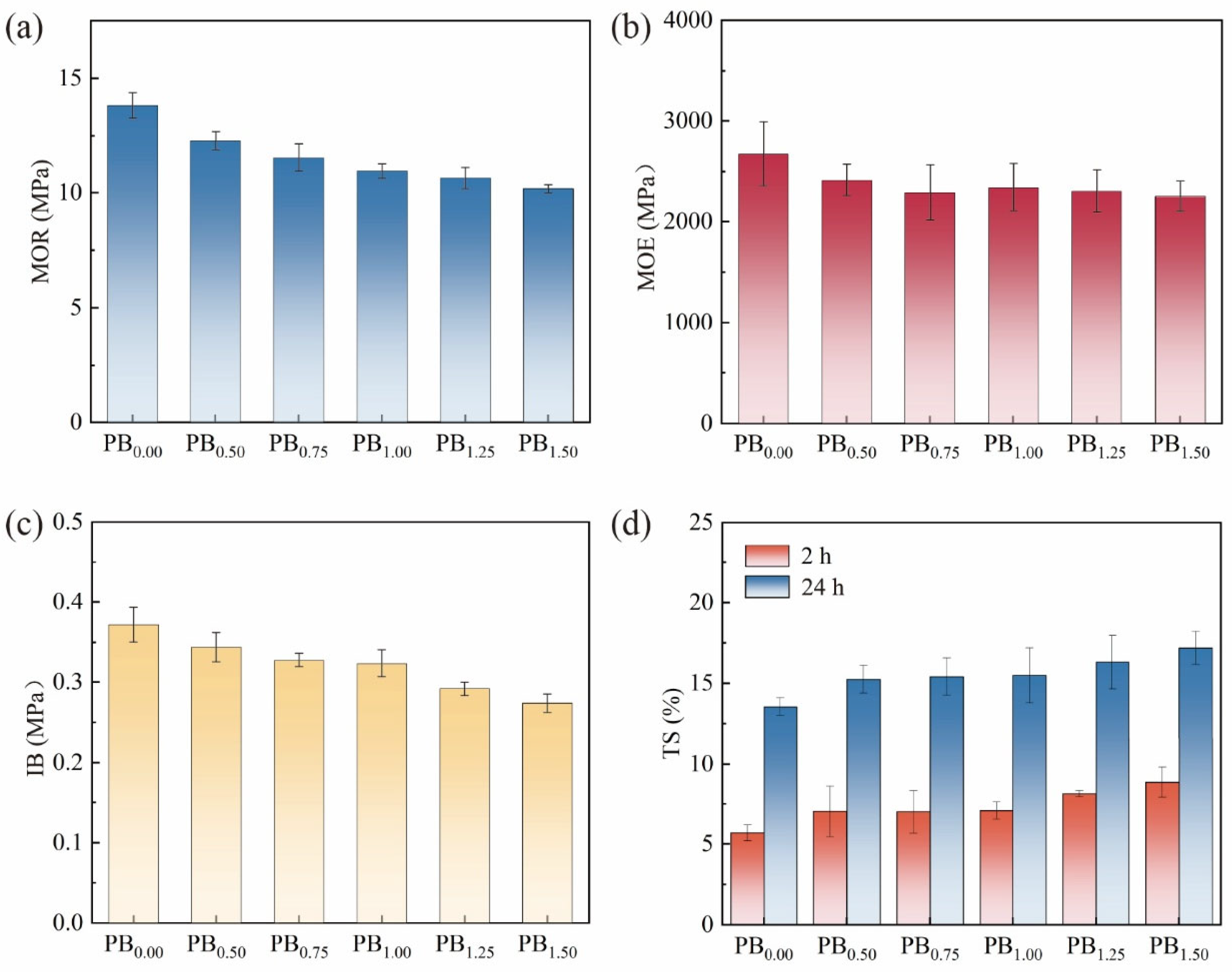 | MOR (MPa) | MOE (MPa) | IB (MPa) | 2 h TS (%) | 24 h TS (%) | |