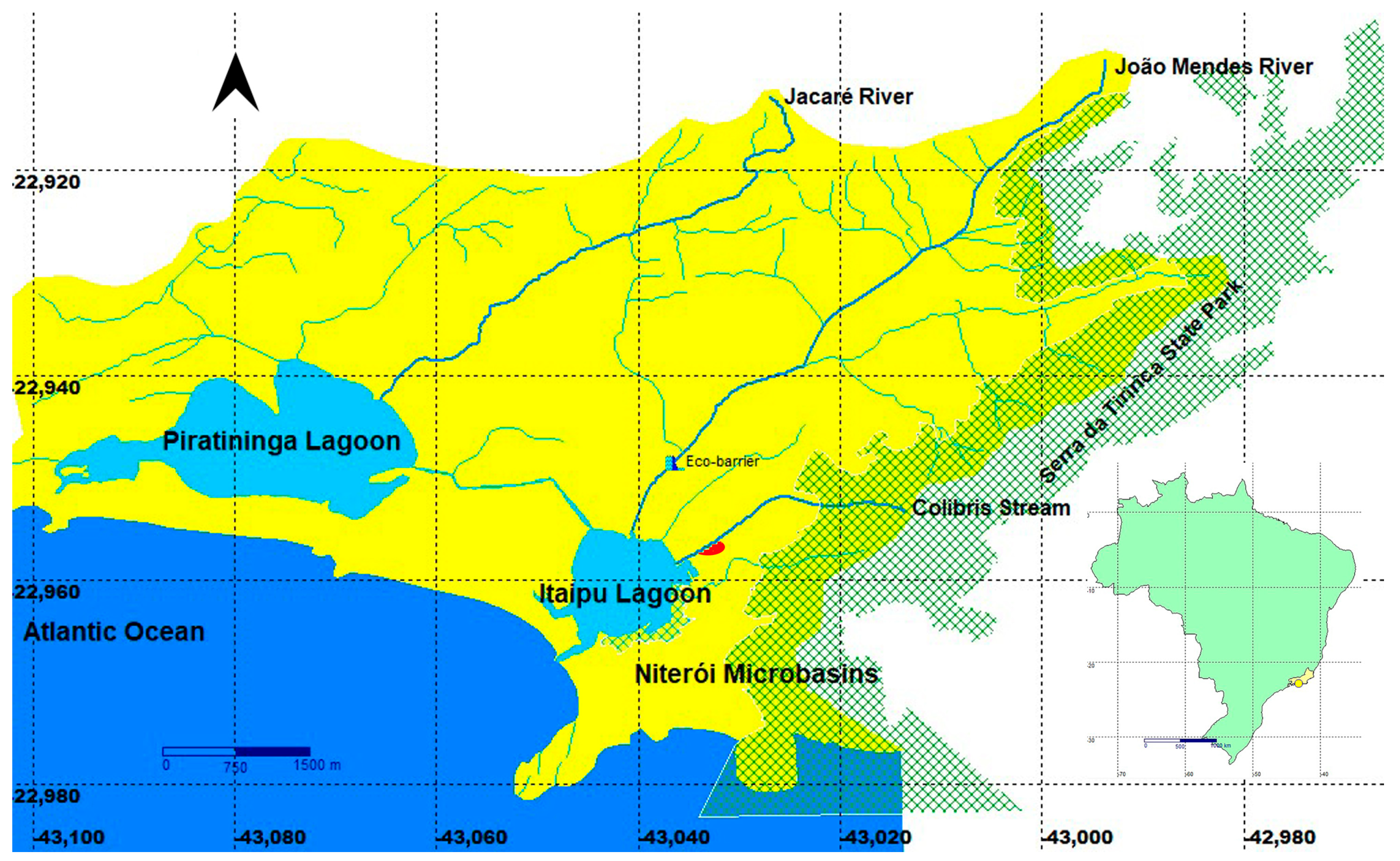 - Sarmento-Soares, L.M.; Martins-Pinheiro, R.F.; Tanscheidt, F.S.T. Collective Córregos da Tiririca: Restoration of Riparian Forest in a Tributary Stream of Itaipu Lagoon, Niterói-RJ, Brazil. Qeios 2024, 6, IA72E0.2. [Google Scholar] [CrossRef]