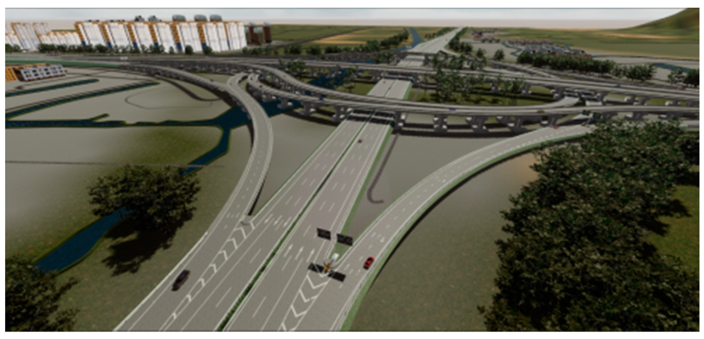 The experimental environment was constructed using the Unity 3D engine to meticulously replicate a complex interchange, as shown in