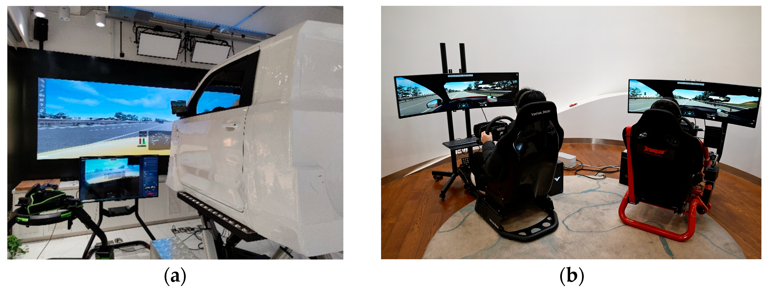 Experimental Process: (a) Experimental Process of the Six Degrees of Freedom Driving Simulator; (b) Experimental Process of the Fixed Base Driving Simulator.