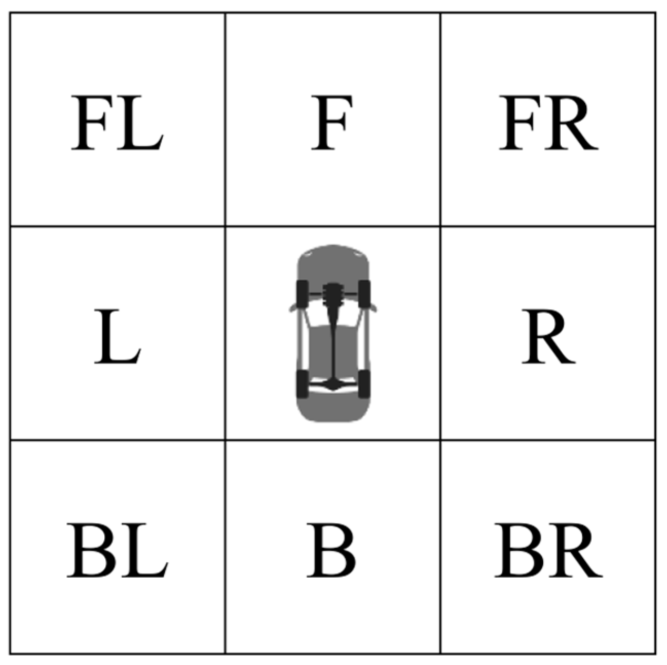 Schematic Diagram of Vehicle Relative Positions (Host vehicle represented as the central gray vehicle).