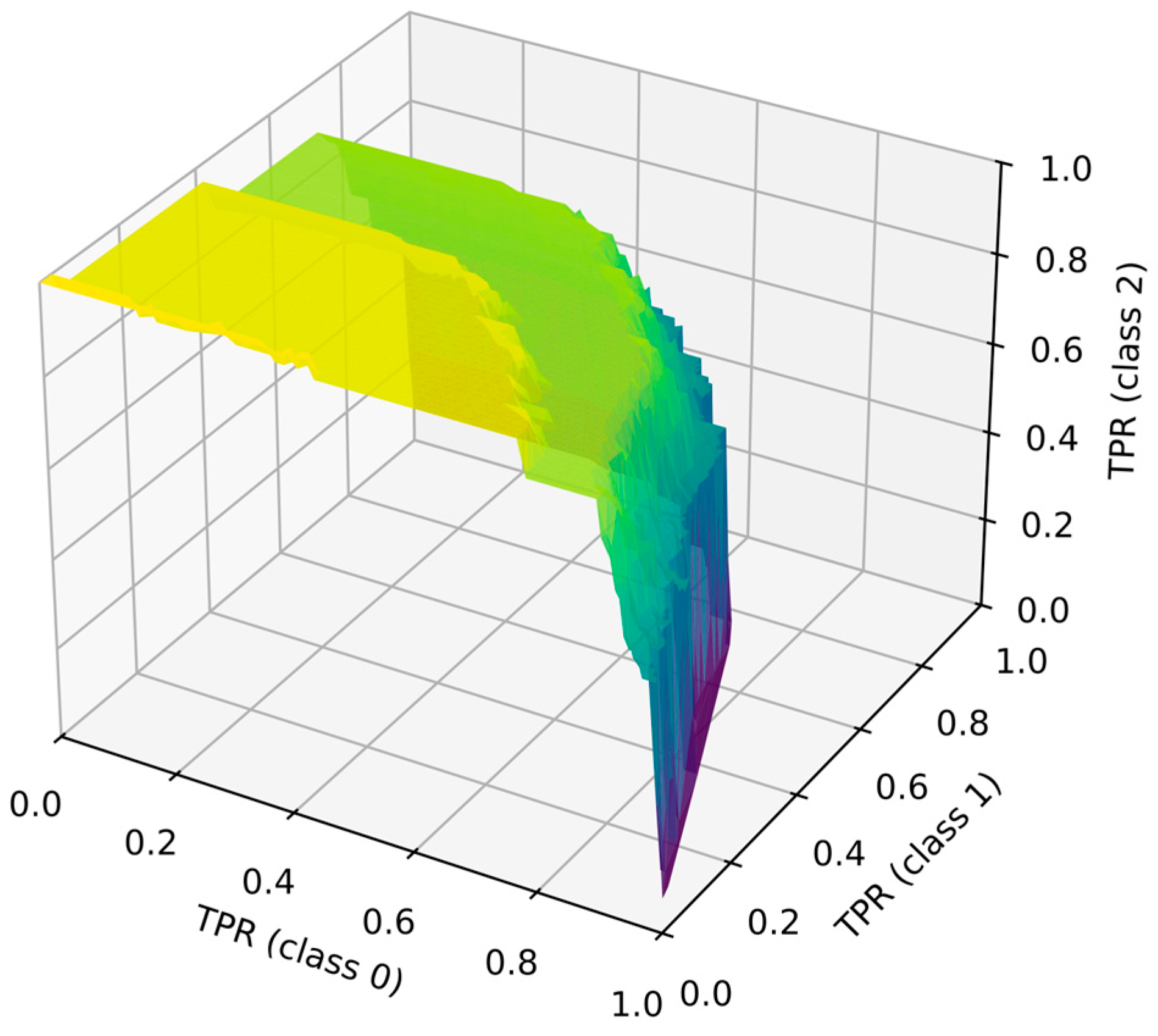 - Liu, S.; Xu, W.; Sun, X.; Zhang, Y. Fast and Unbiased Estimation of Volume under Ordered Three-Class ROC Surface (VUS) Based on Dynamic Programming. IEEE Access 2019, 7, 63972–63982. [Google Scholar] [CrossRef]