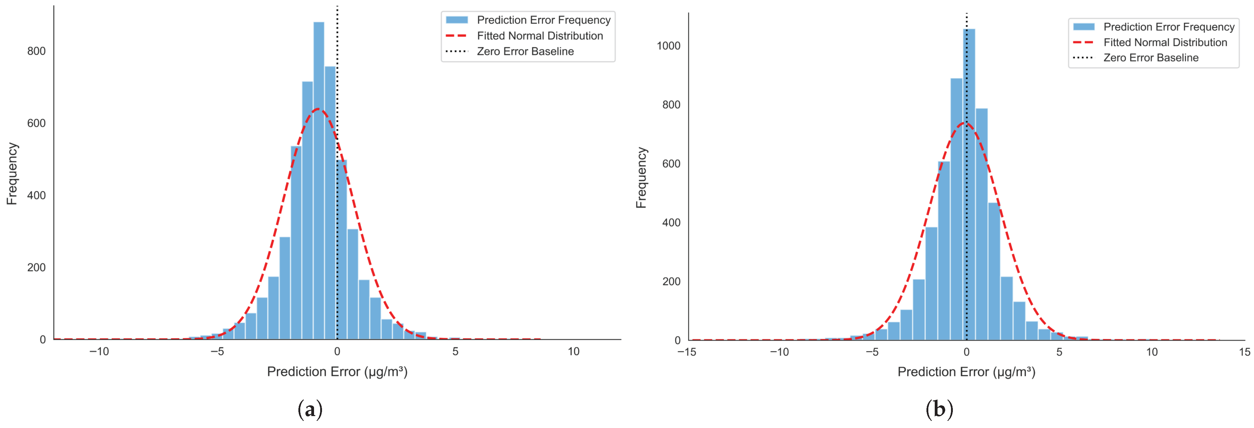 Figure 14). According to the statistics, the error range for the Guangzhou station is [−11.56, 7.60] μg/m