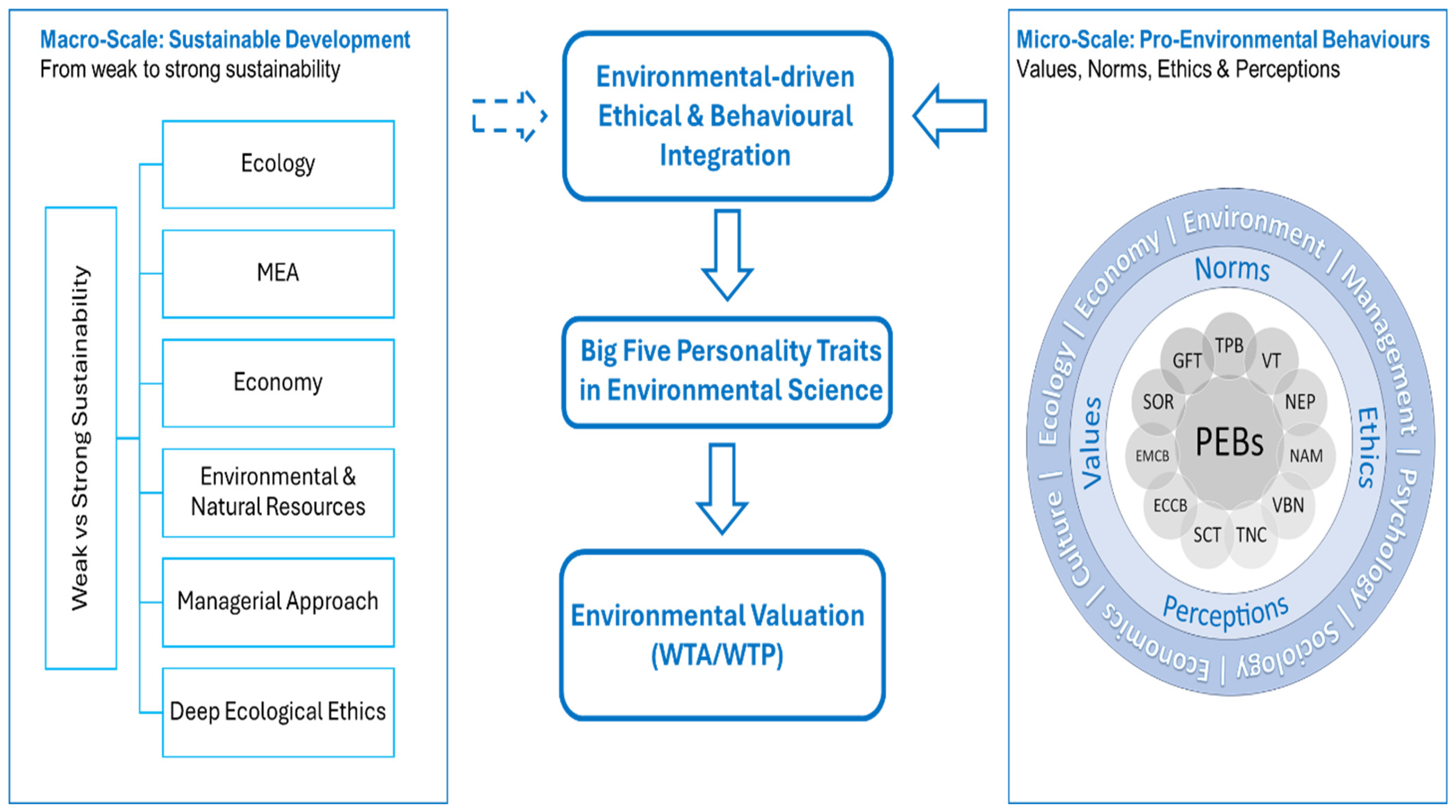 - How can the integration of macro-scale sustainability frameworks with micro-scale psychological and behavioural dimensions support the development of an ethical consensus for sustainable development and more robust environmental valuation practices?