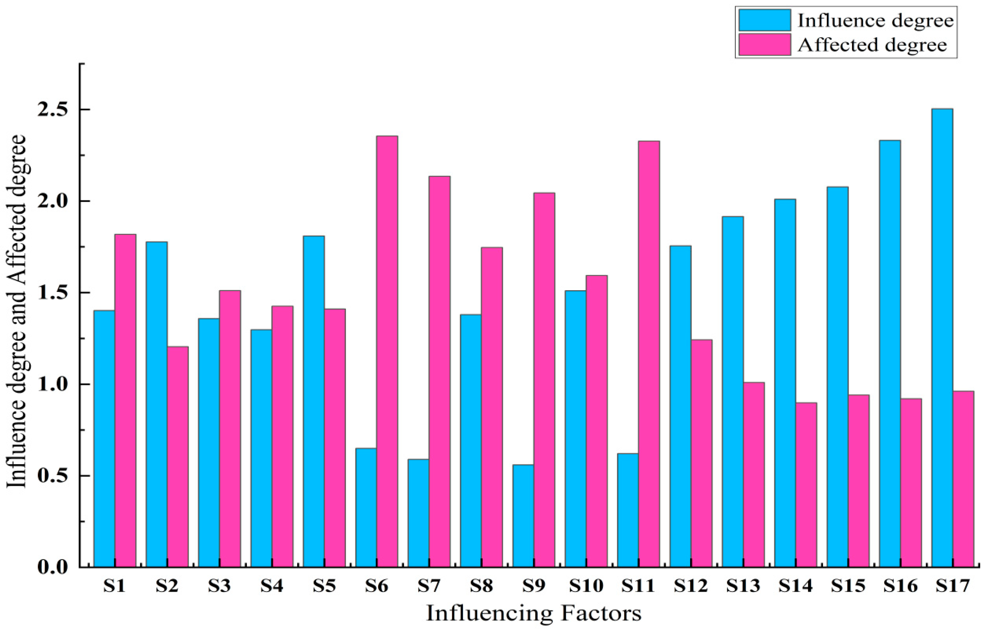 | Factor | Influence Degree | Affected Degree | Centrality | Causality | Ranking | Attributes |