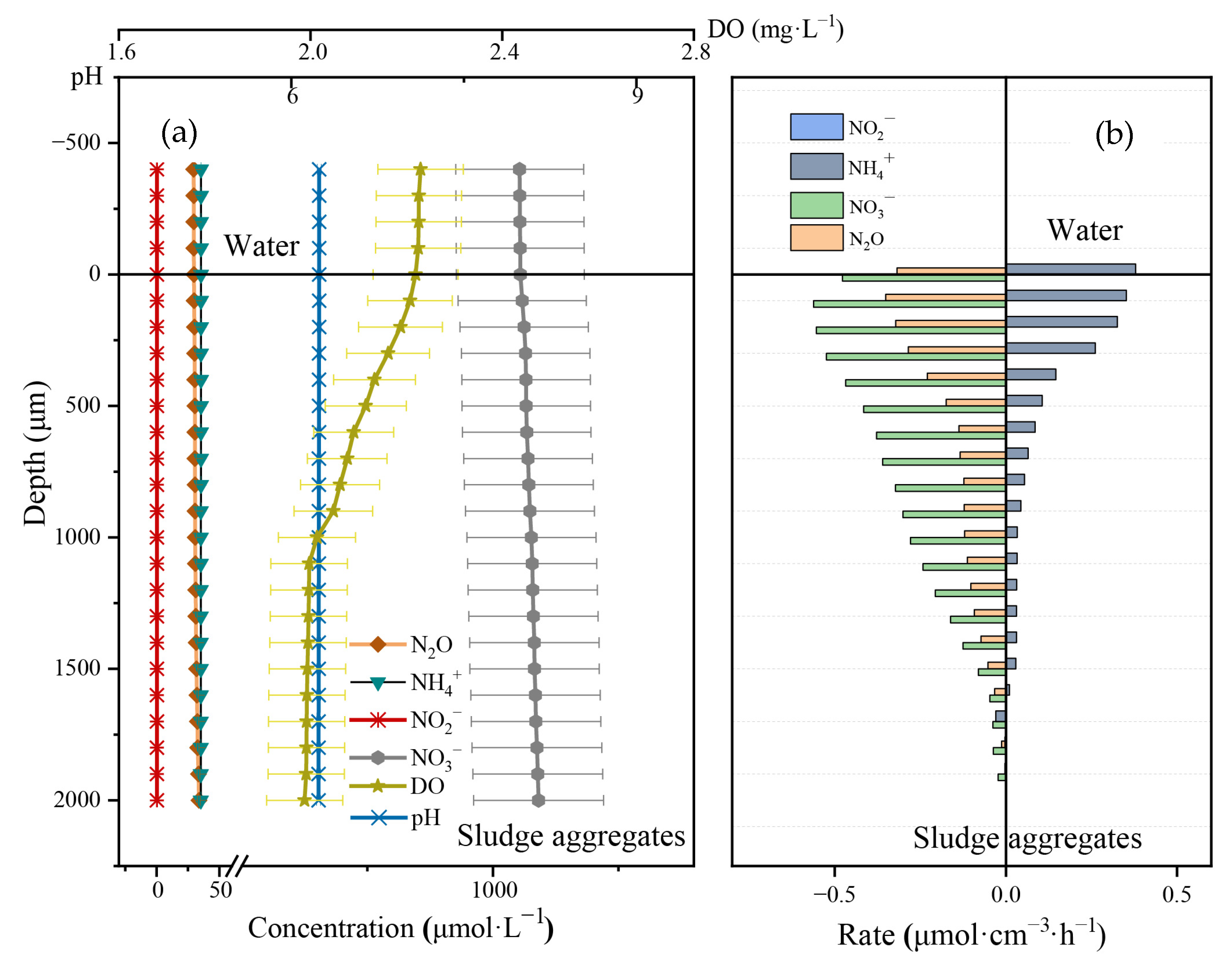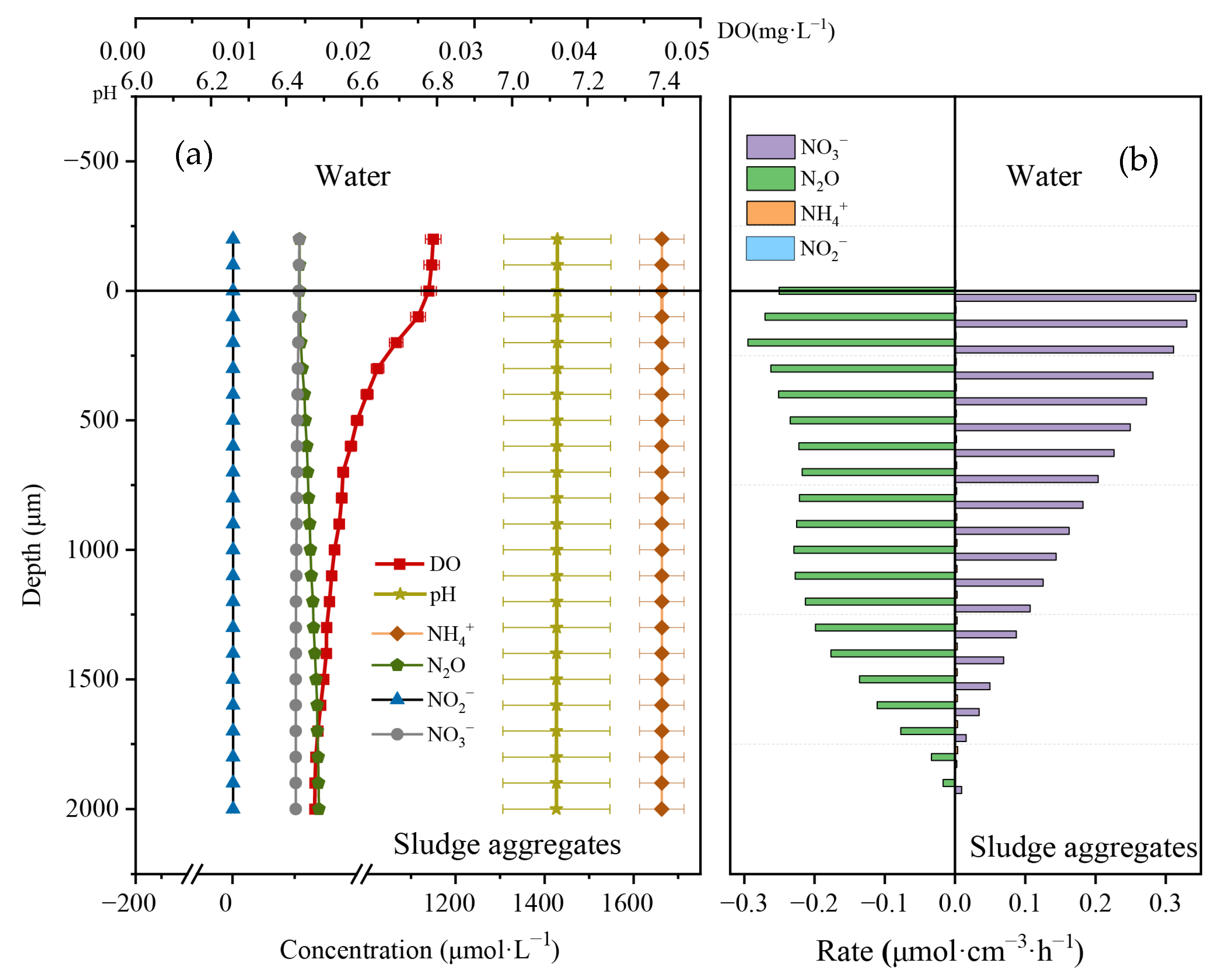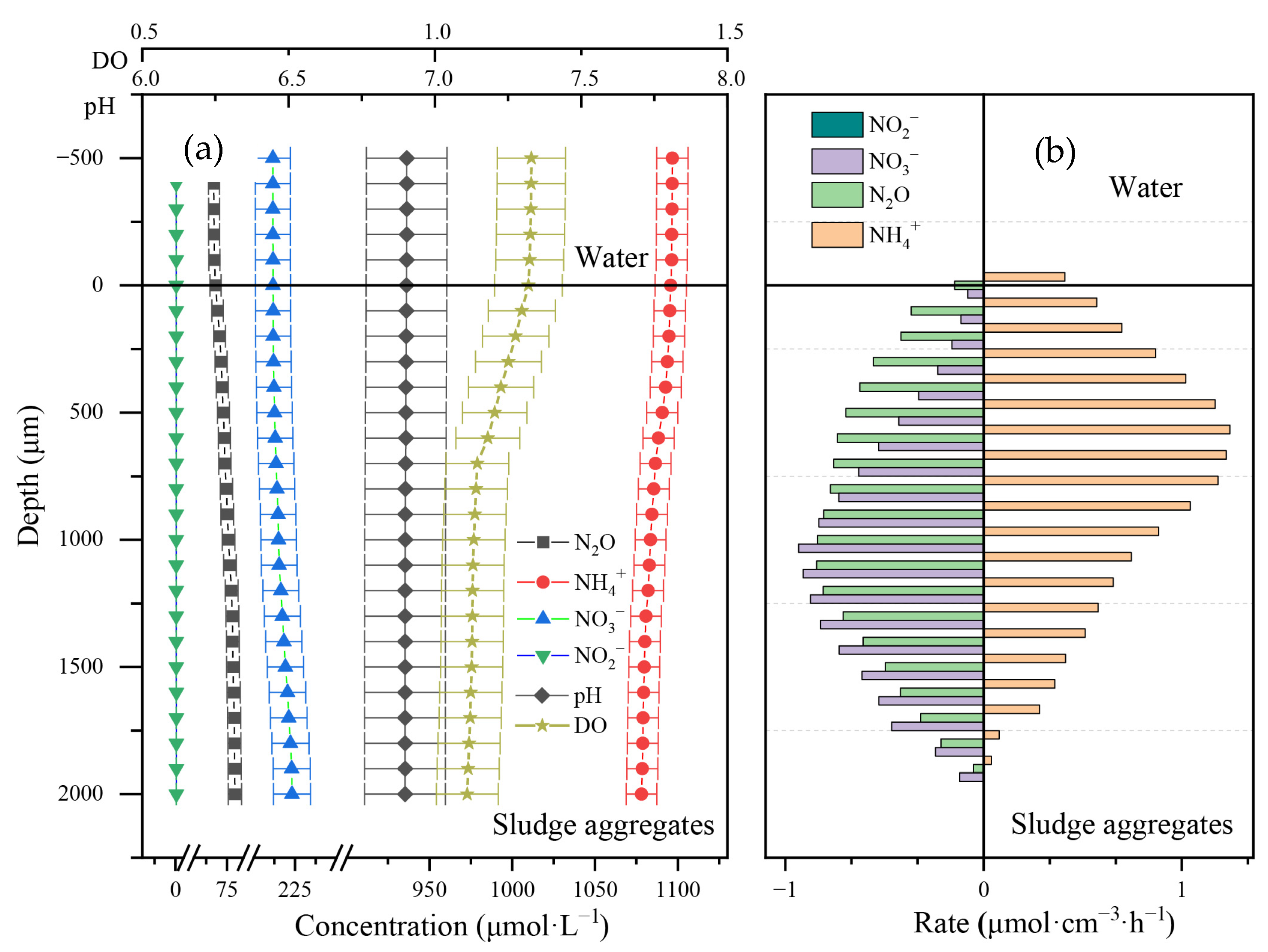 | Sections of the Biological Tank | Rate (µmol·cm−3·h−1) | Net Production (µmol·cm−2·h−1) | ||