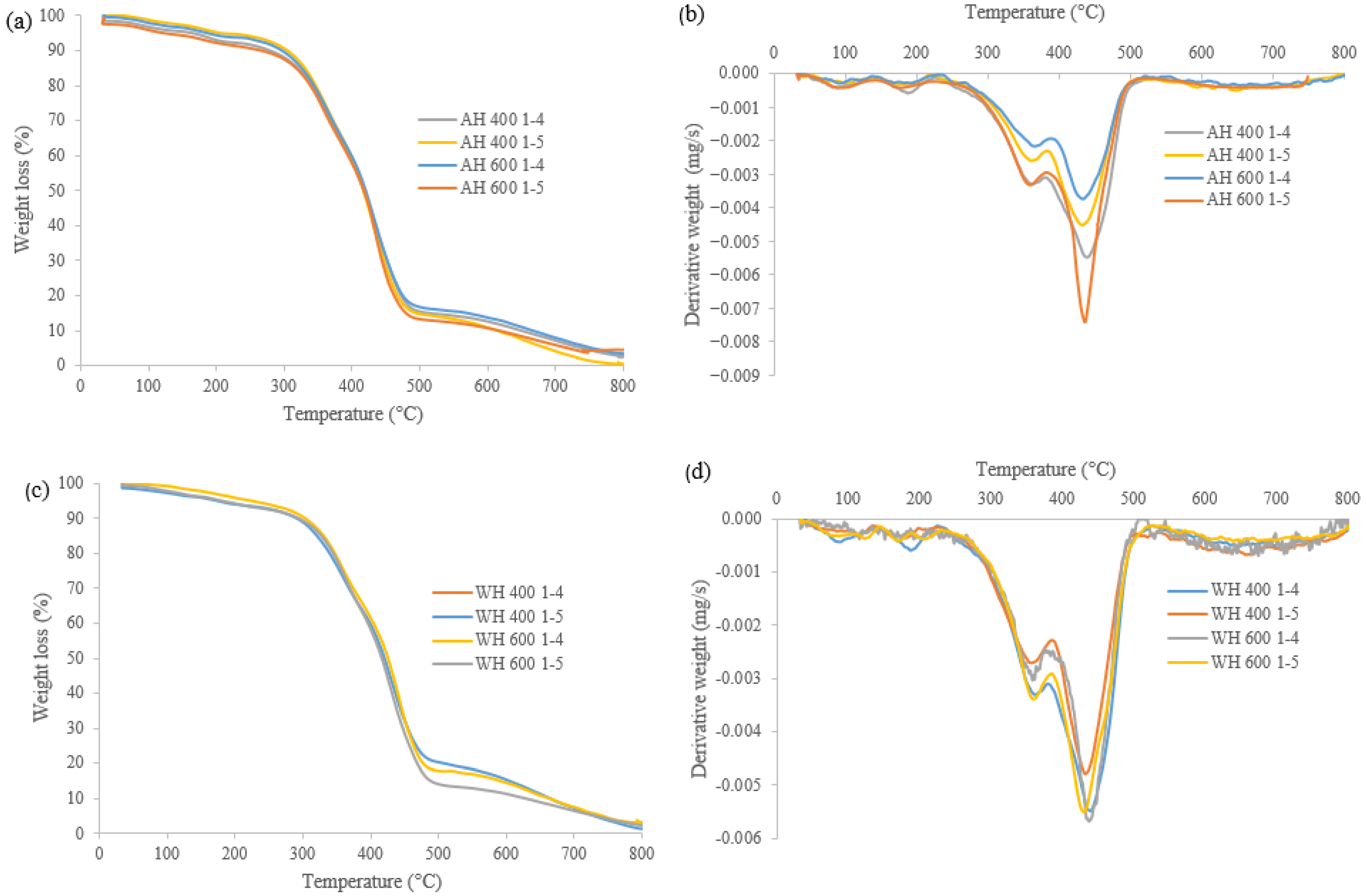 | AH 600 1:5 | 1:5 | Bio-oil from Almond hulls pyrolyzed to 600 °C, mixed with DGEBA |
