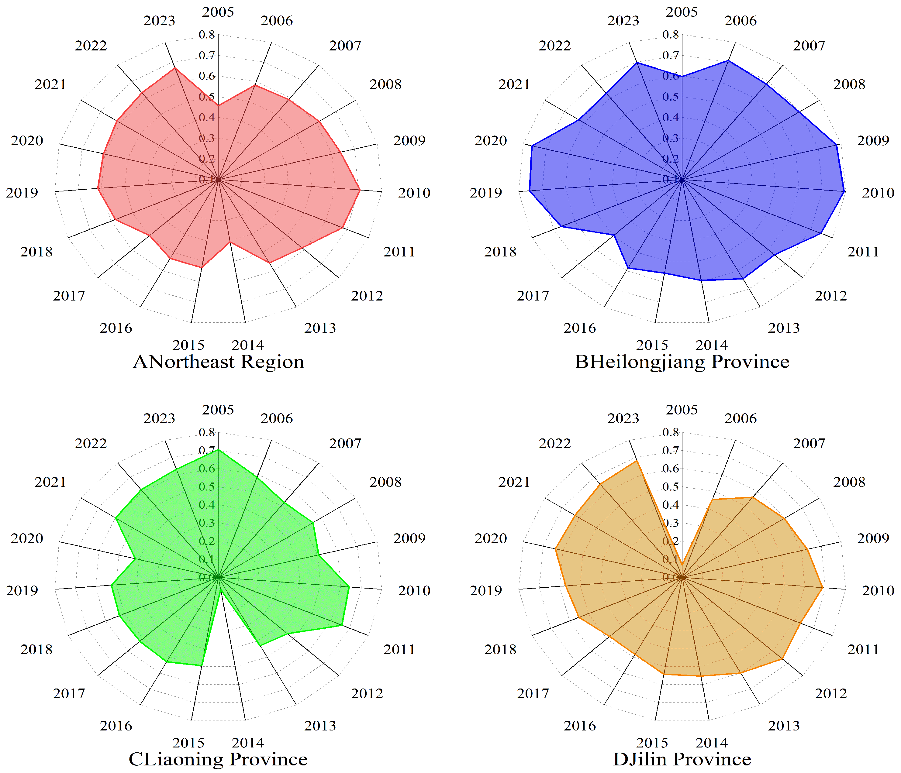 5.2.2. Analysis of Coupling Coordination Degree Levels