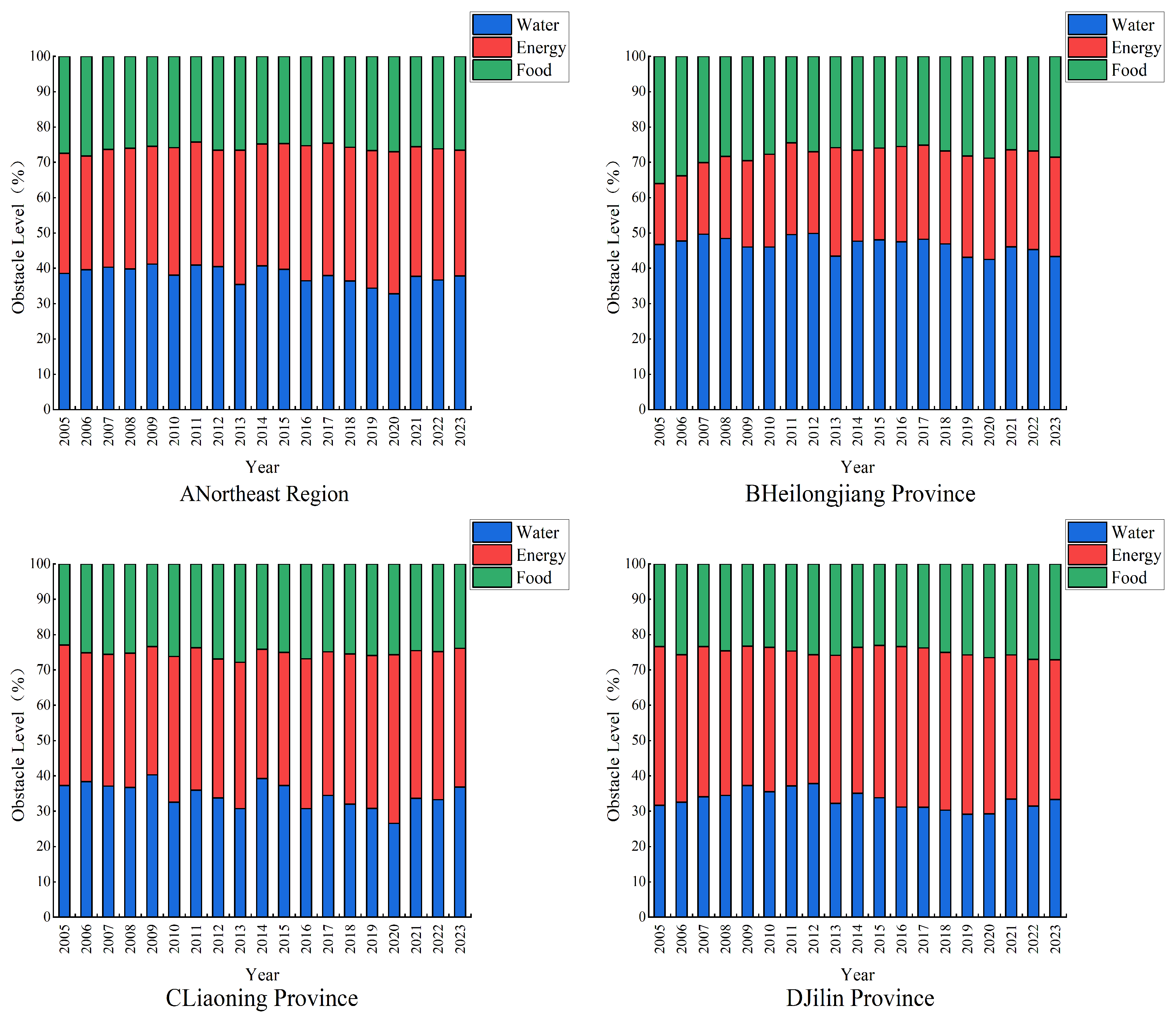 5.3. Research on Obstacle Factors Affecting the Coordinated Development of the WEF Security System in Northeast China