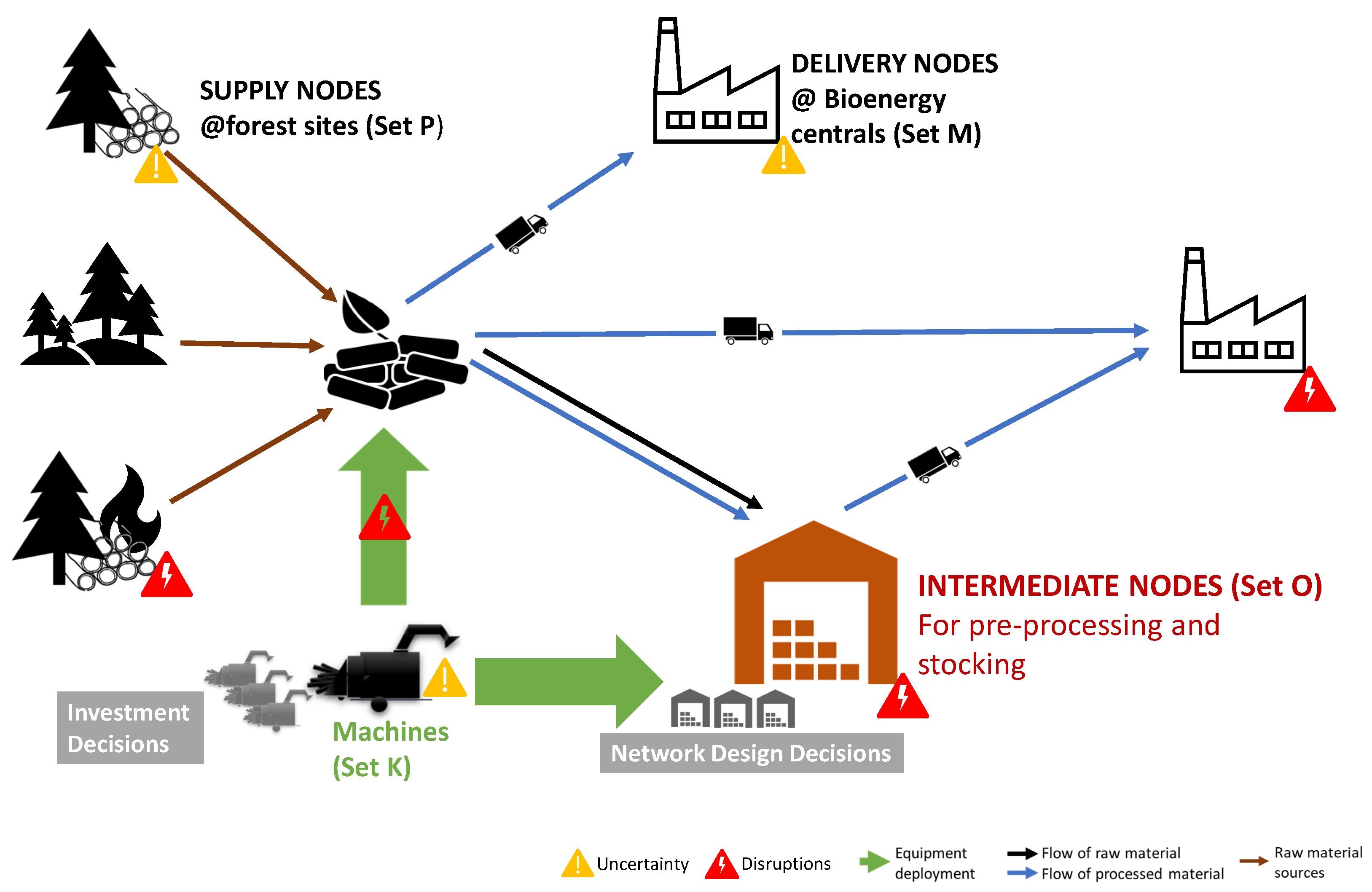- Derived managerial and practical insights support the decision-making process of forest-to-bioenergy supply chain design under uncertainty and disruptions.