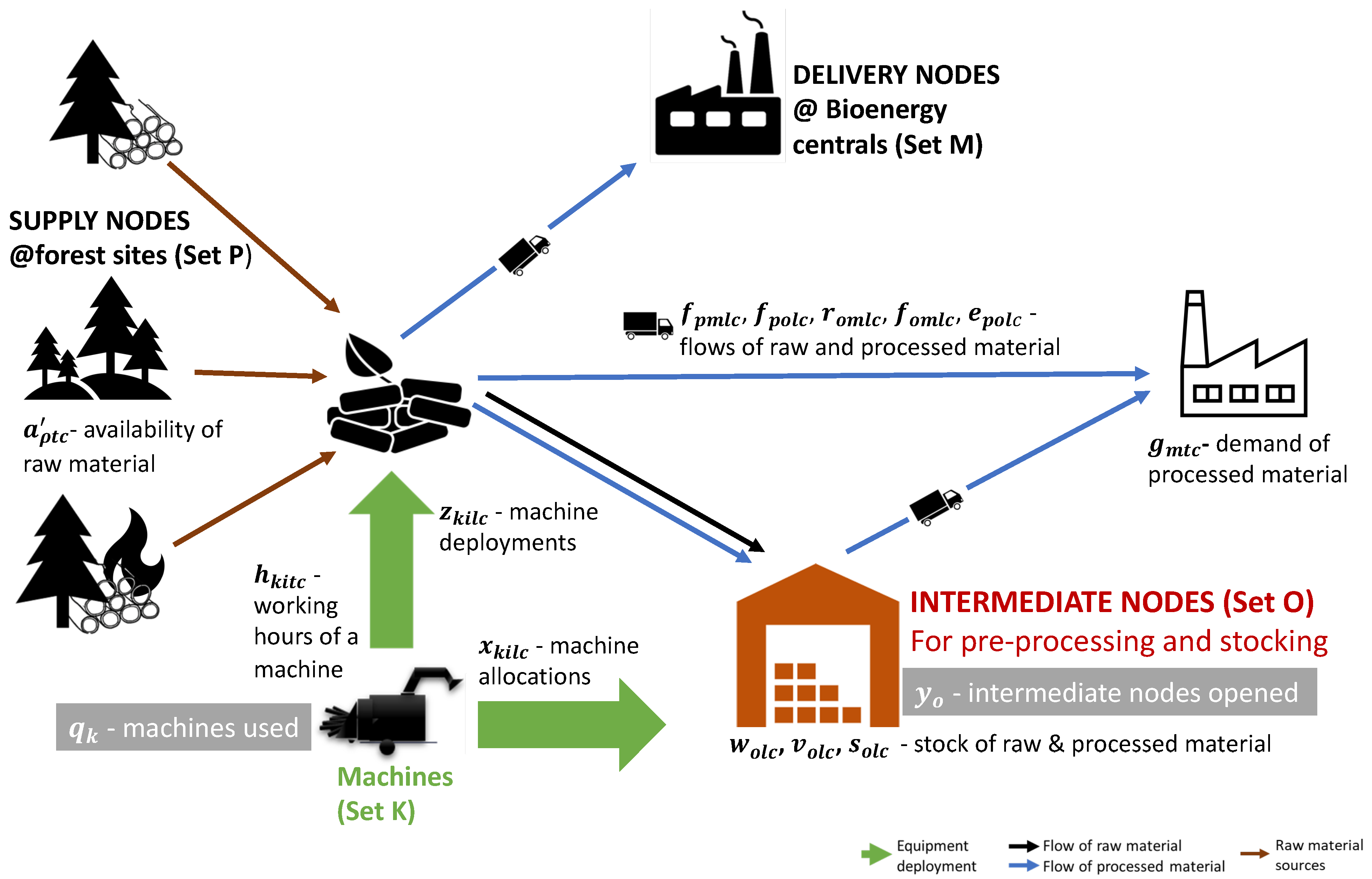 - Malladi, K.T.; Sowlati, T. Biomass logistics: A review of important features, optimization modeling and the new trends. Renew. Sustain. Energy Rev. 2018, 94, 587–599. [Google Scholar] [CrossRef]