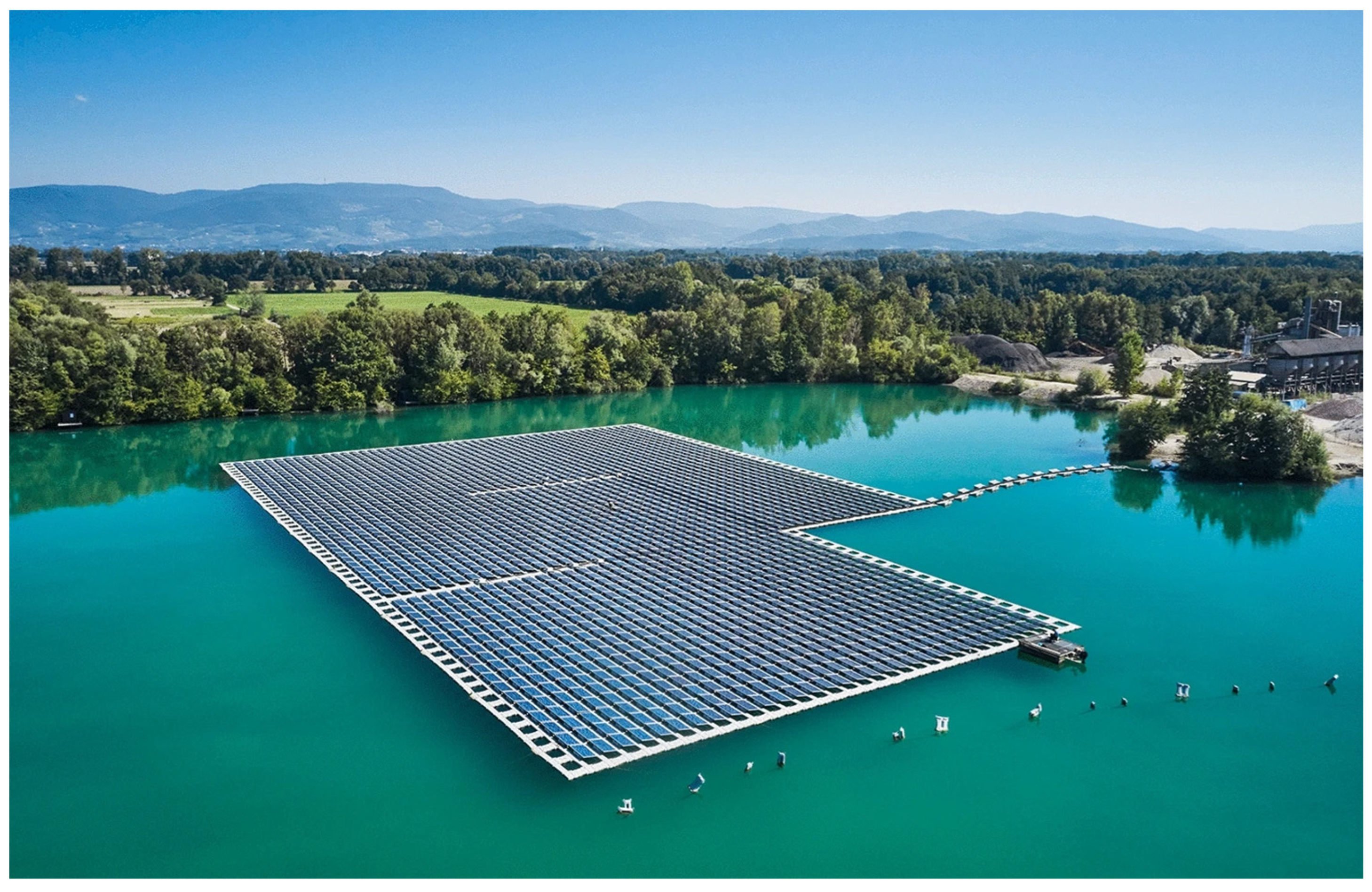 - Nobre, R.L.G.; Vagnon, C.; Boulêtreau, S.; Colas, F.; Azémar, F.; Tudesque, L.; Parthuisot, N.; Millet, P.; Cucherousset, J. Floating Photovoltaics Strongly Reduce Water Temperature: A Whole-Lake Experiment. J. Environ. Manage. 2025, 375, 124230. [Google Scholar] [CrossRef]