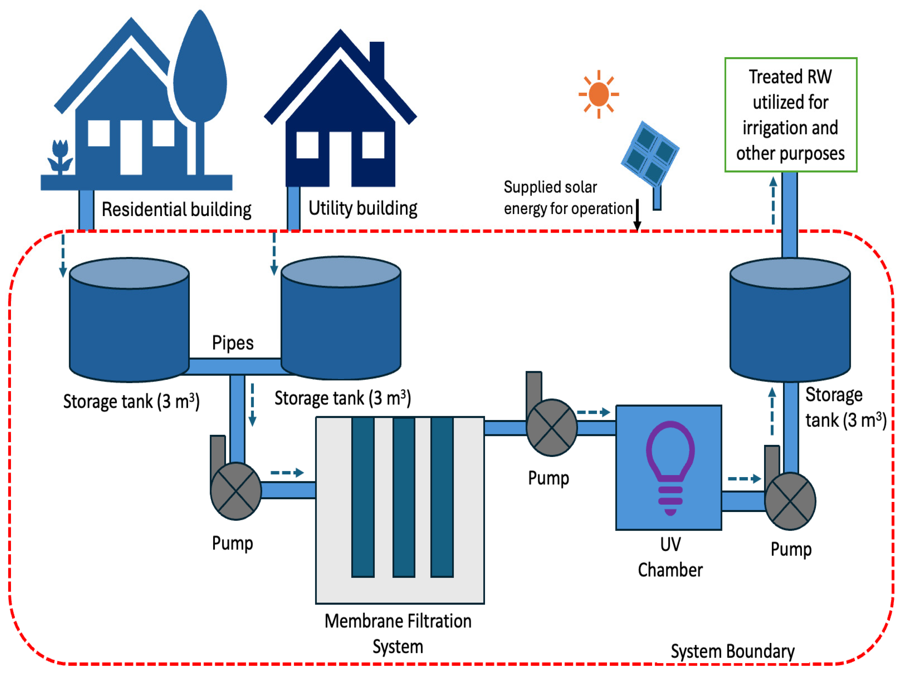 | Collected RW | RW collection from residential and utilities building | 1.2 | m3 | Not applicable | Measured |