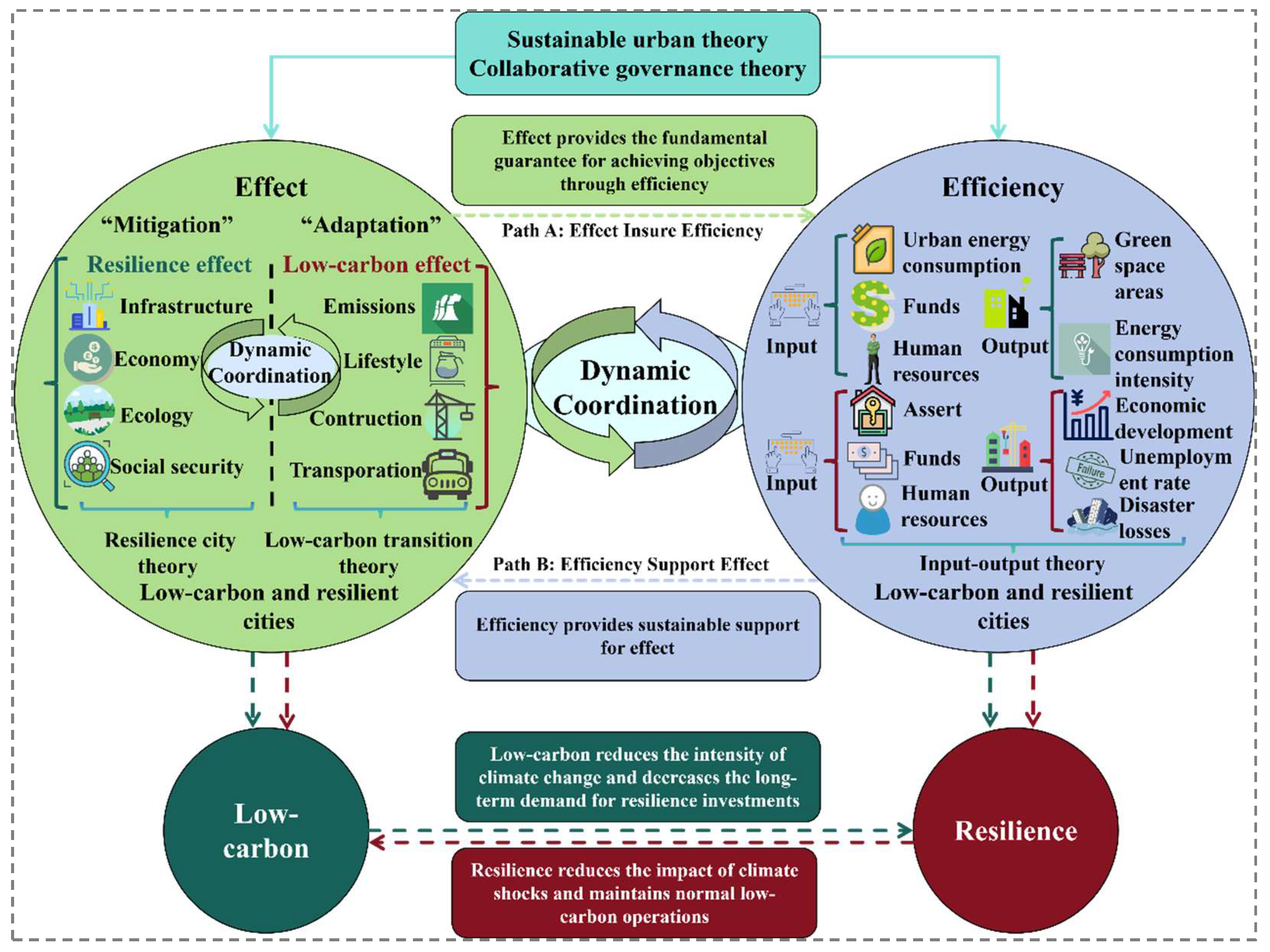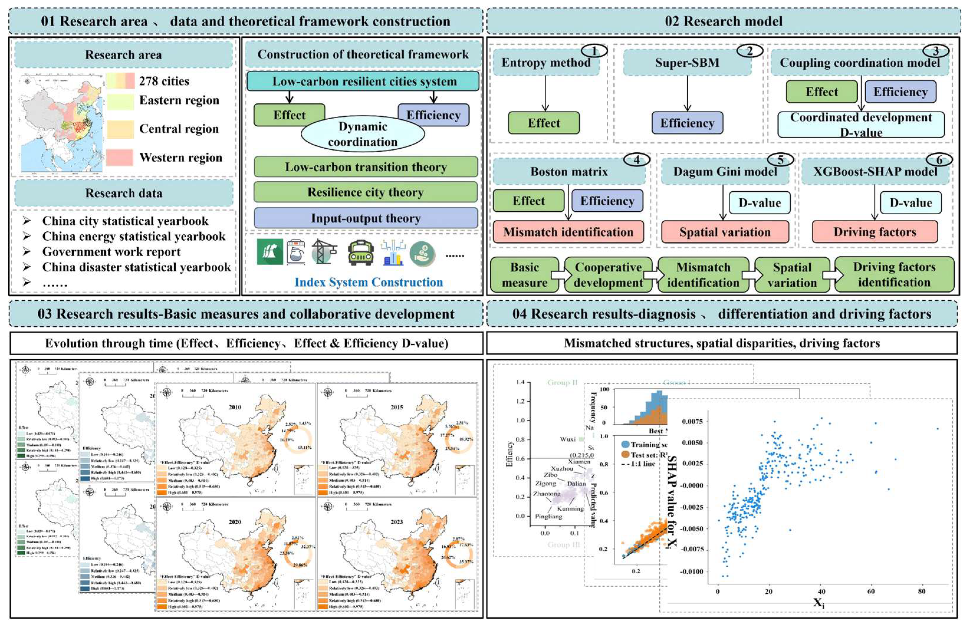 | Ref. [13] Green technologies and infrastructure development are key factors influencing the efficiency and effect of low-carbon, resilient transformation within urban systems | Advantage: Research into constructing an evaluation framework for assessing the efficiency of low-carbon, resilient transformation within urban systems; Limitations: Overlooking the significance of governance effect within urban systems |