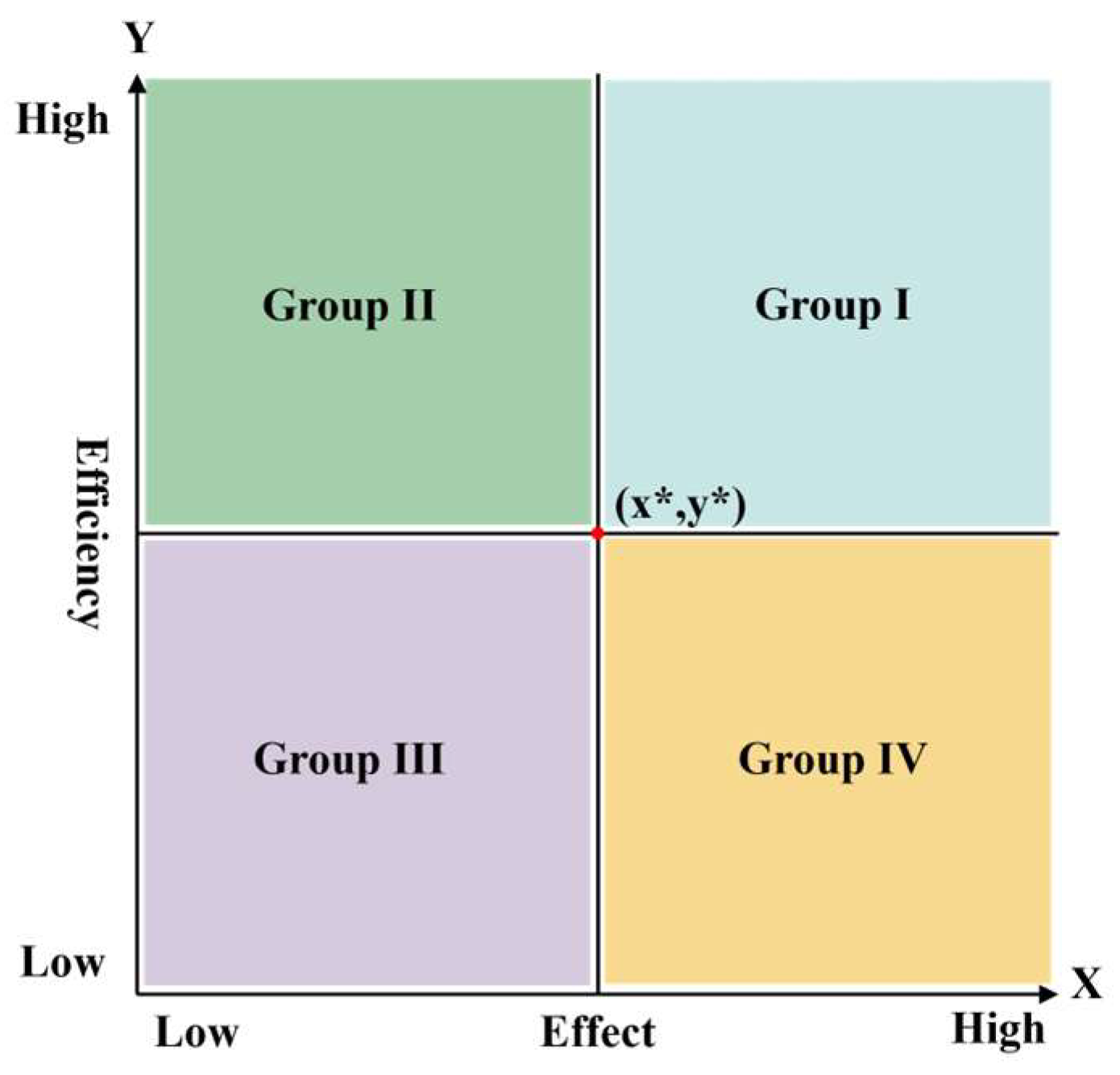 5.1. Evolution and Disparity Analysis of Effect and Efficiency