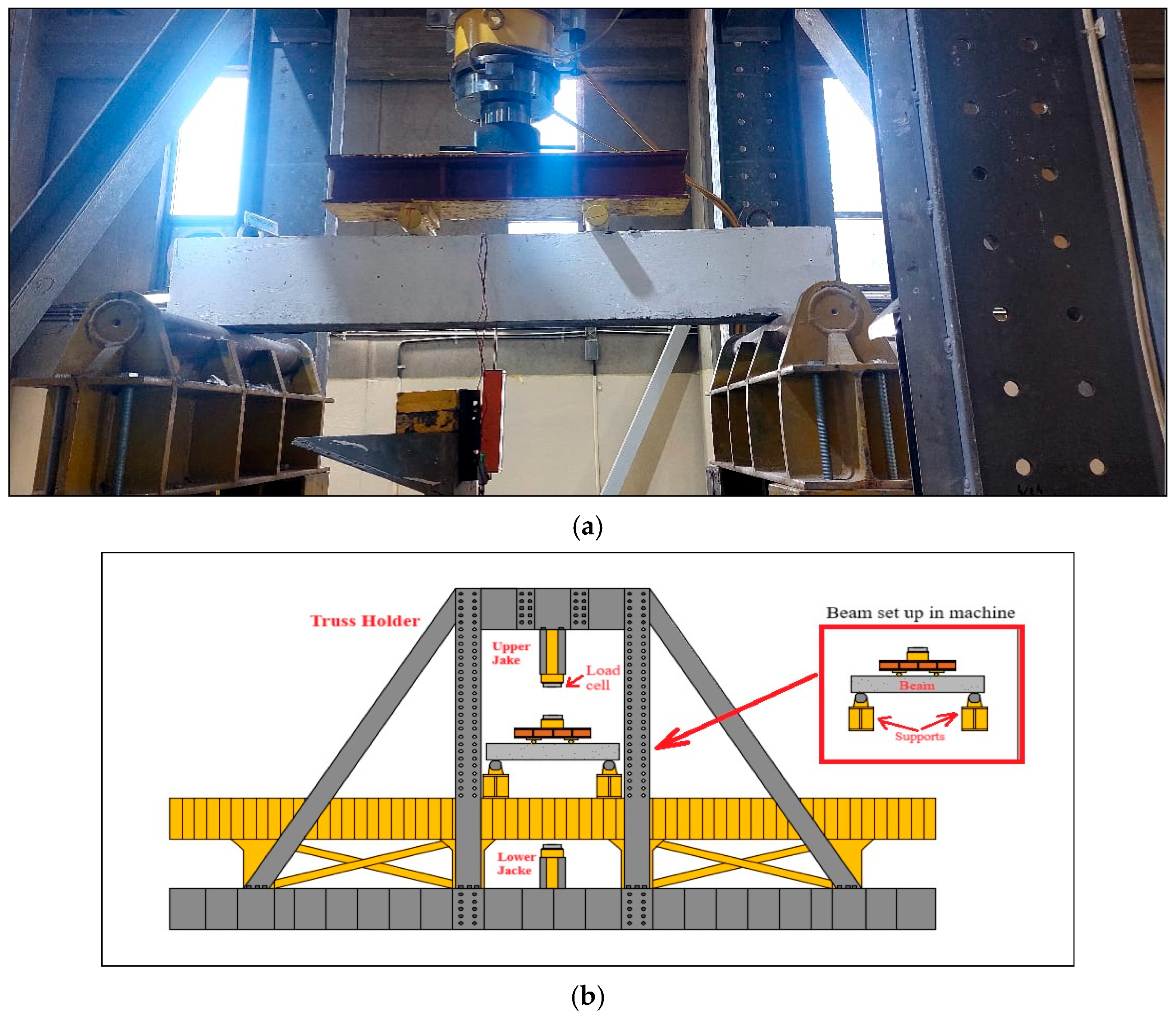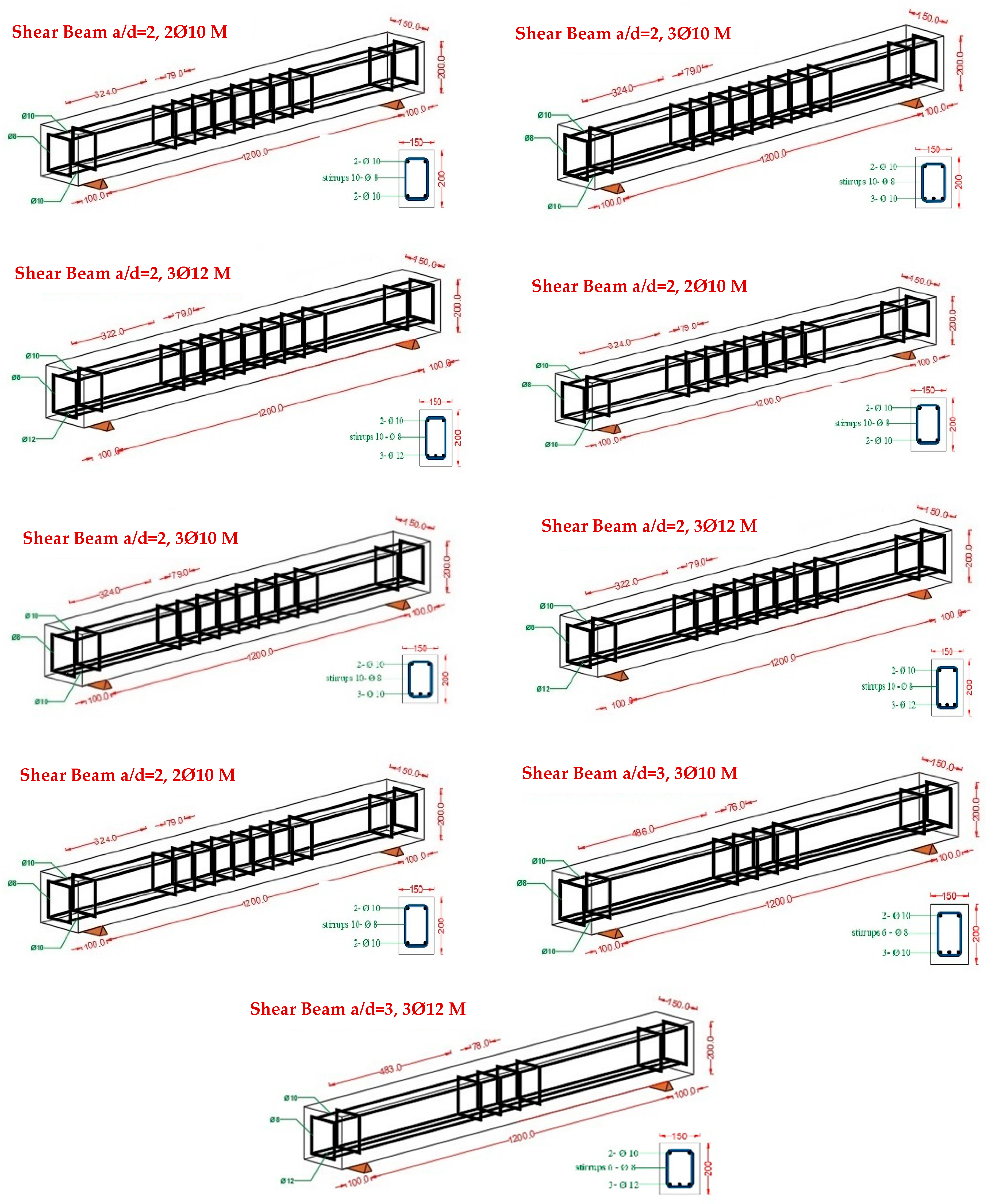 - Sinaei, H.; Shariati, M.; Abna, A.H.; Aghaei, M.; Shariati, A. Evaluation of reinforced concrete beam behavior using finite element analysis by ABAQUS. Sci. Res. Essays 2012, 7, 2002–2009. [Google Scholar]
