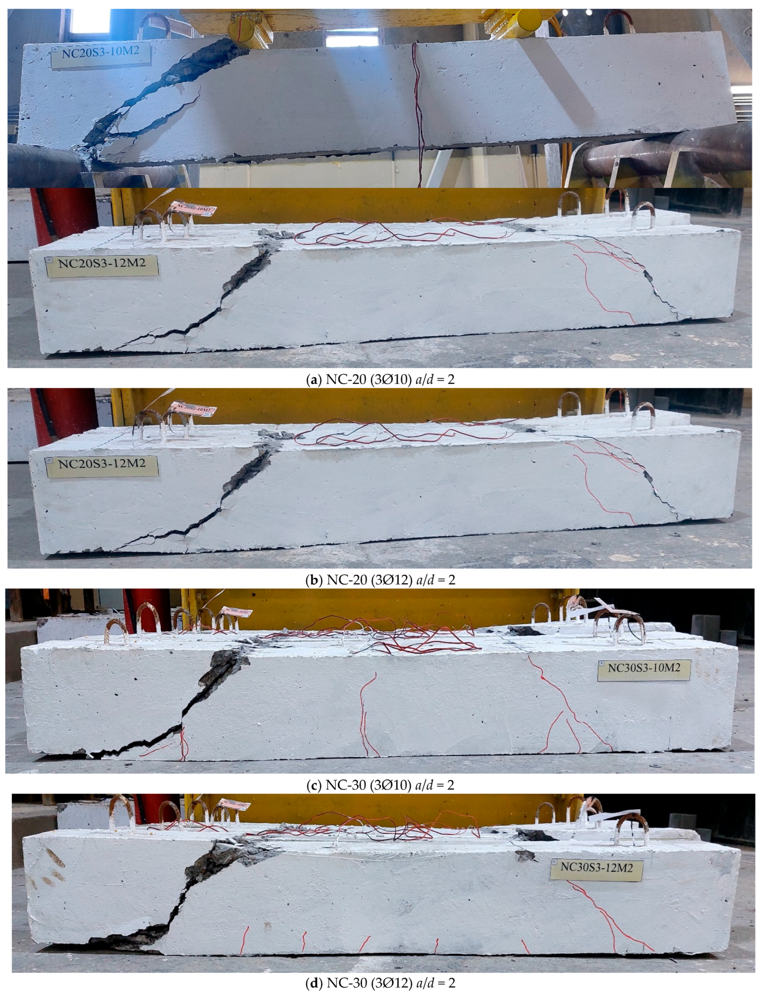 3.4. Cracking Patterns and Shear Failure Modes