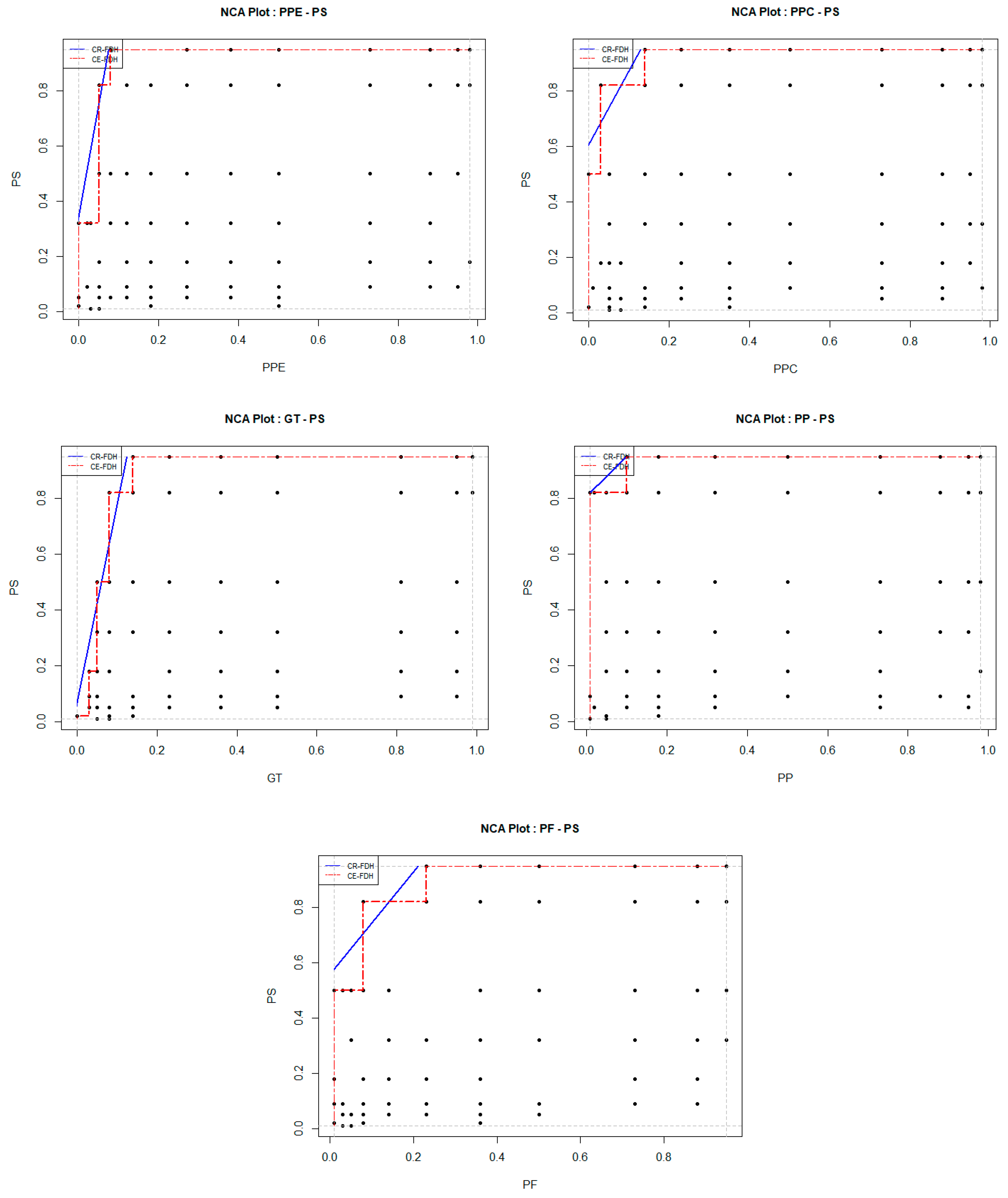 The second question addressed in this study is whether there is a relationship of necessity between policy factors and PS. Current literature is more concerned with causal relationships between policy factors and PS, without focusing on the necessary conditions that play the function of a “one-vote veto.” This study combined NCA and fsQCA to analyze whether each policy factor is a necessary condition for PS, and what the degree of necessity is, responding to the initiative of methodological integration [