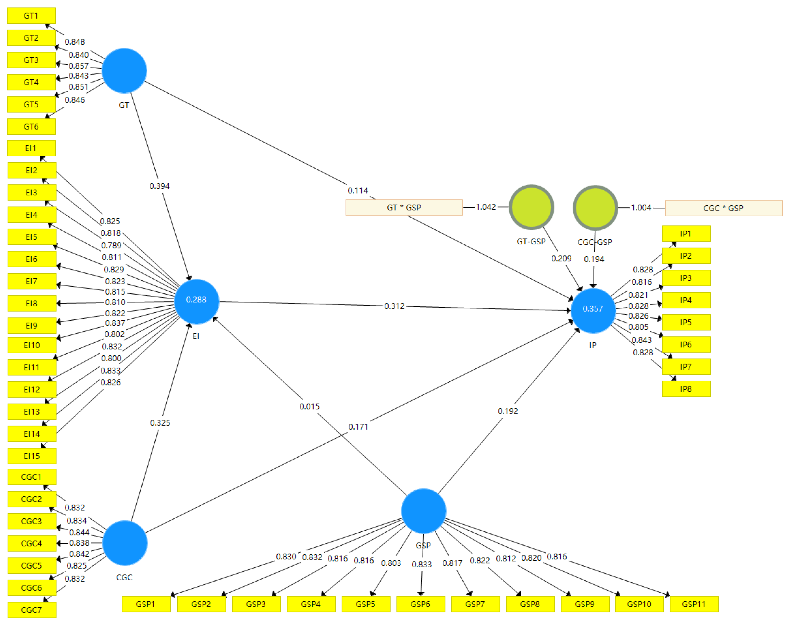 | GT*GSP → IP | 0.209 | 0.054 | 3.851 | 0.000 | Significant |