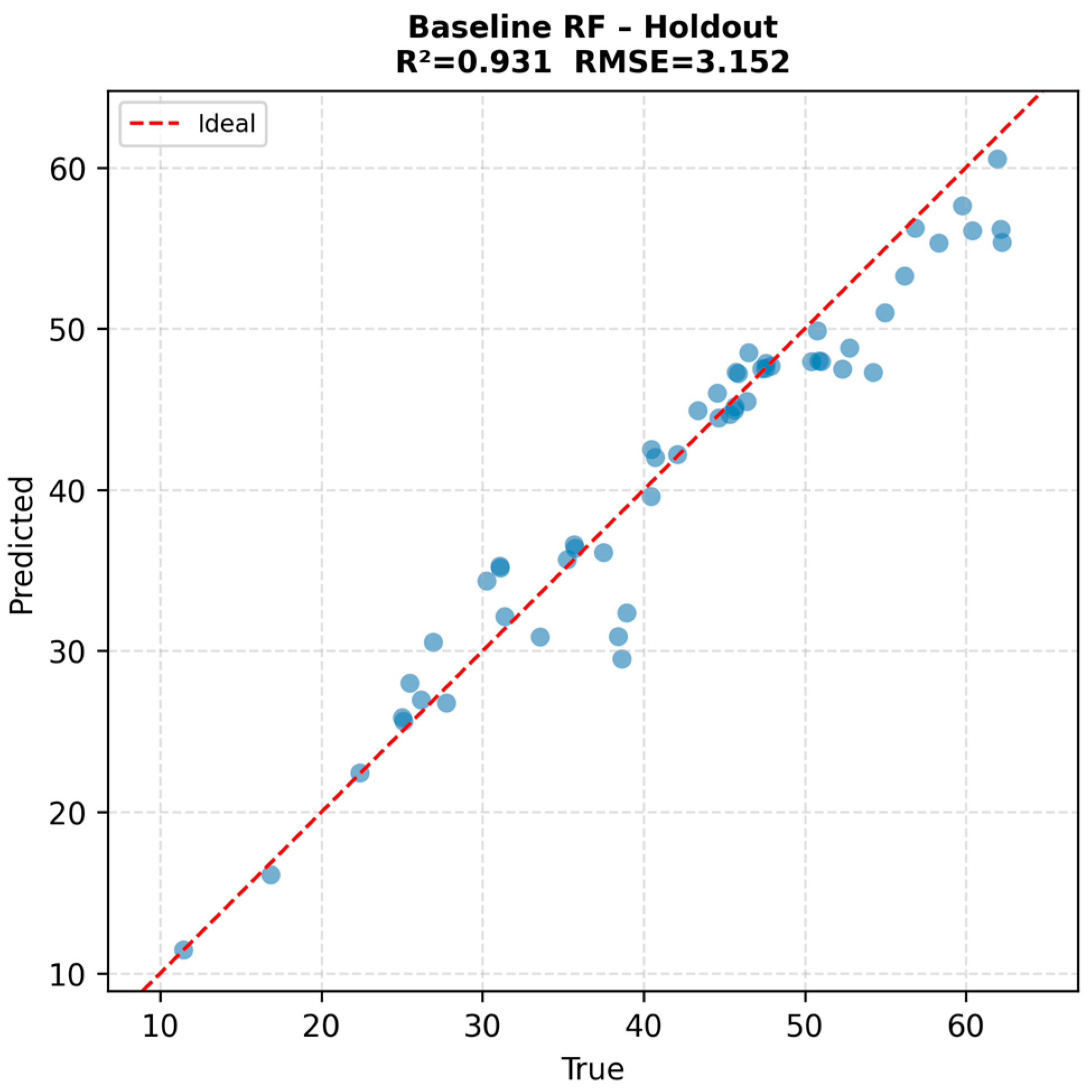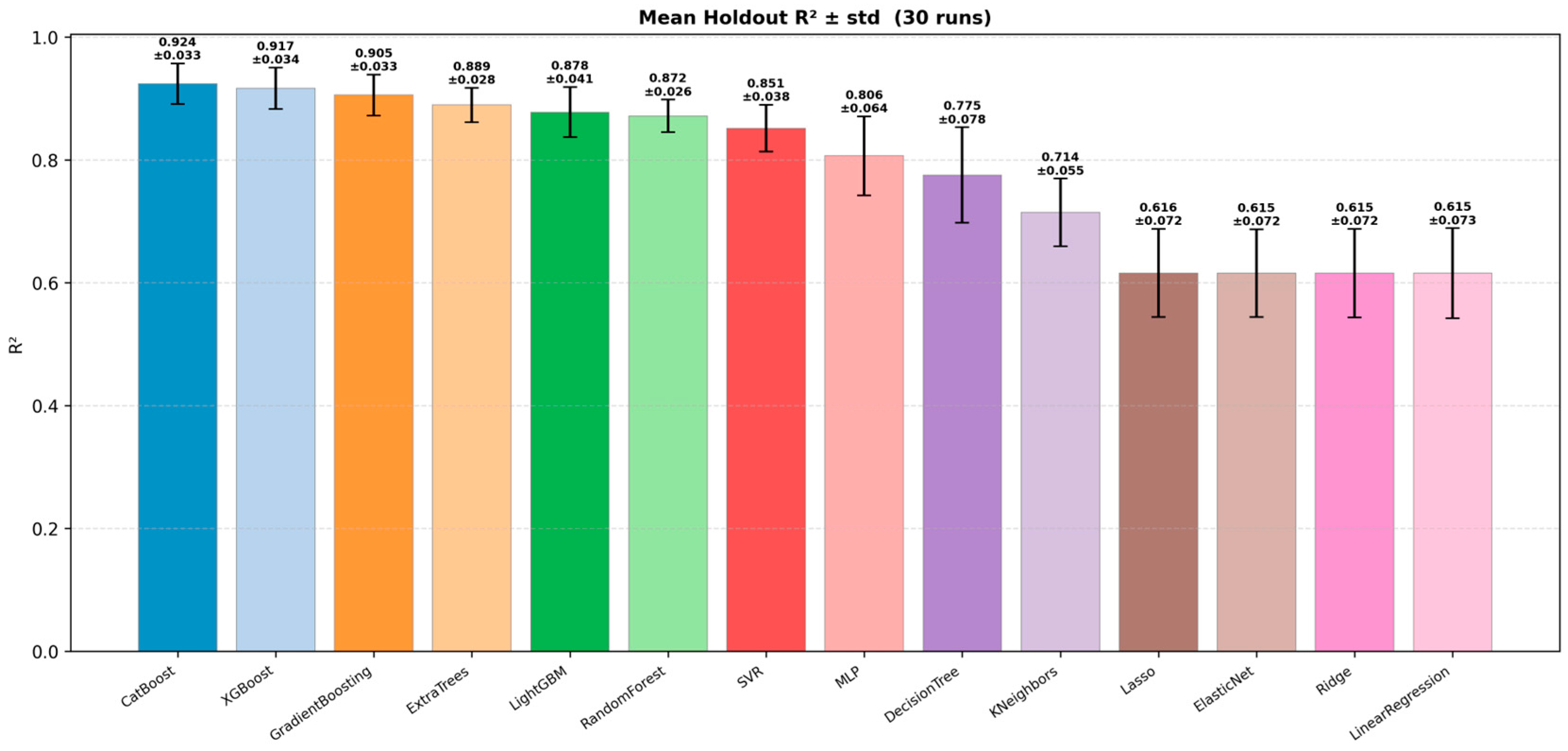 | Model | Holdout R2 | Holdout RMSE | Holdout MAE | CV R2 | CV RMSE | Seed |