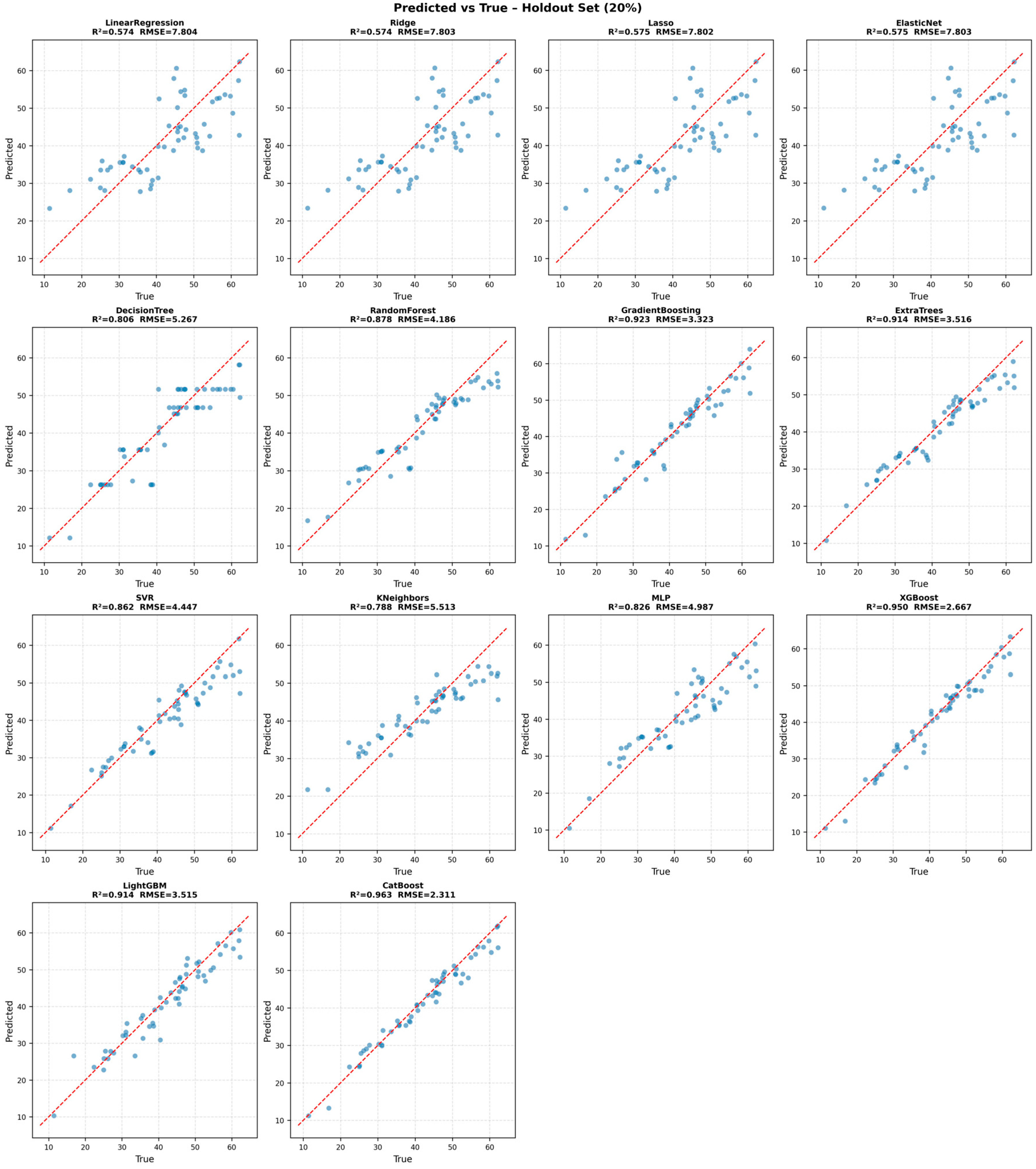 | Model | Holdout R2 | Holdout RMSE | Holdout MAE | CV R2 | CV RMSE |