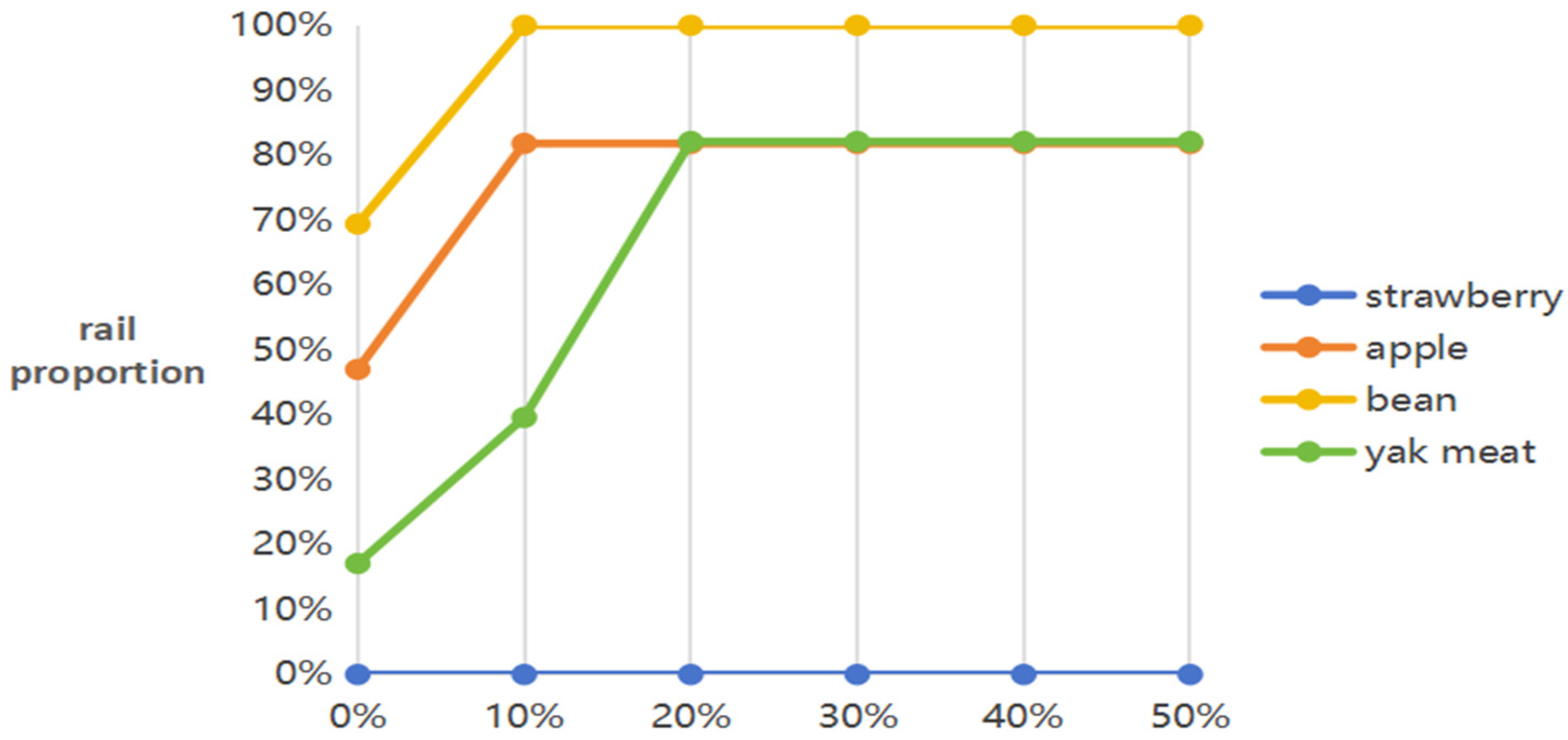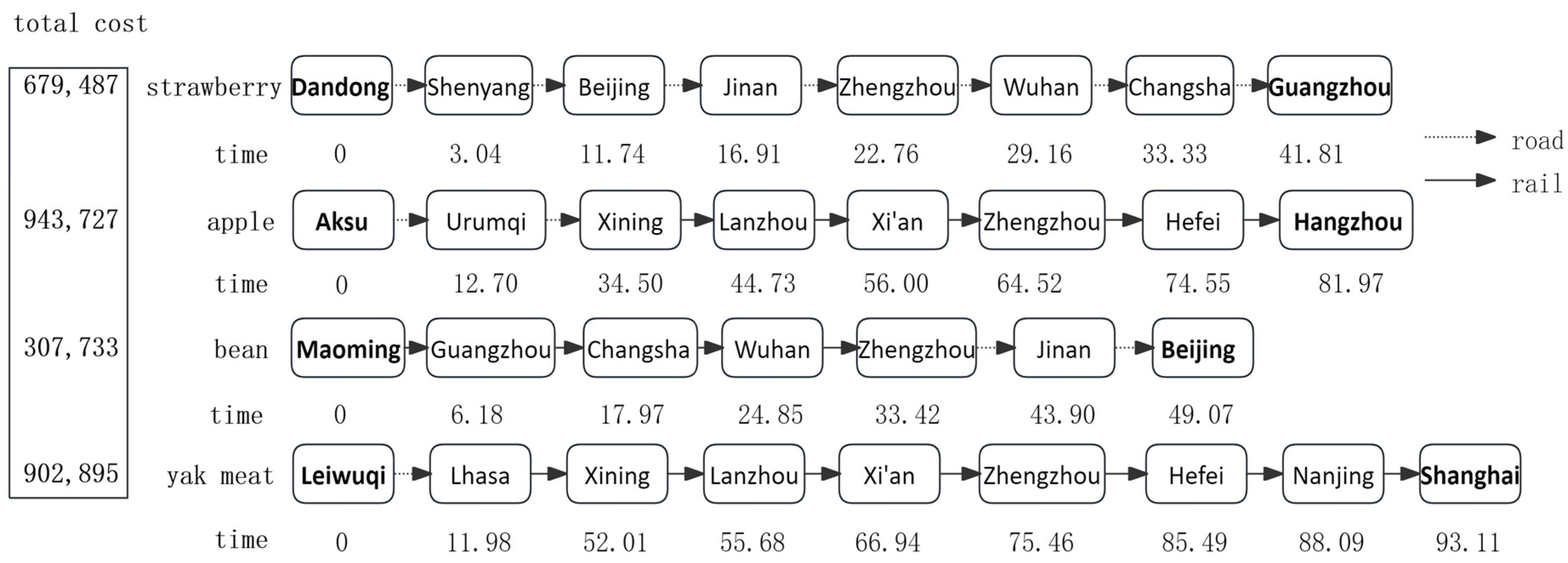 - Zhang, H.; Li, Y.; Zhang, Q.; Chen, D. Route selection of multimodal transport based on China railway transportation. J. Adv. Transp. 2021, 2021, 9984659. [Google Scholar] [CrossRef]