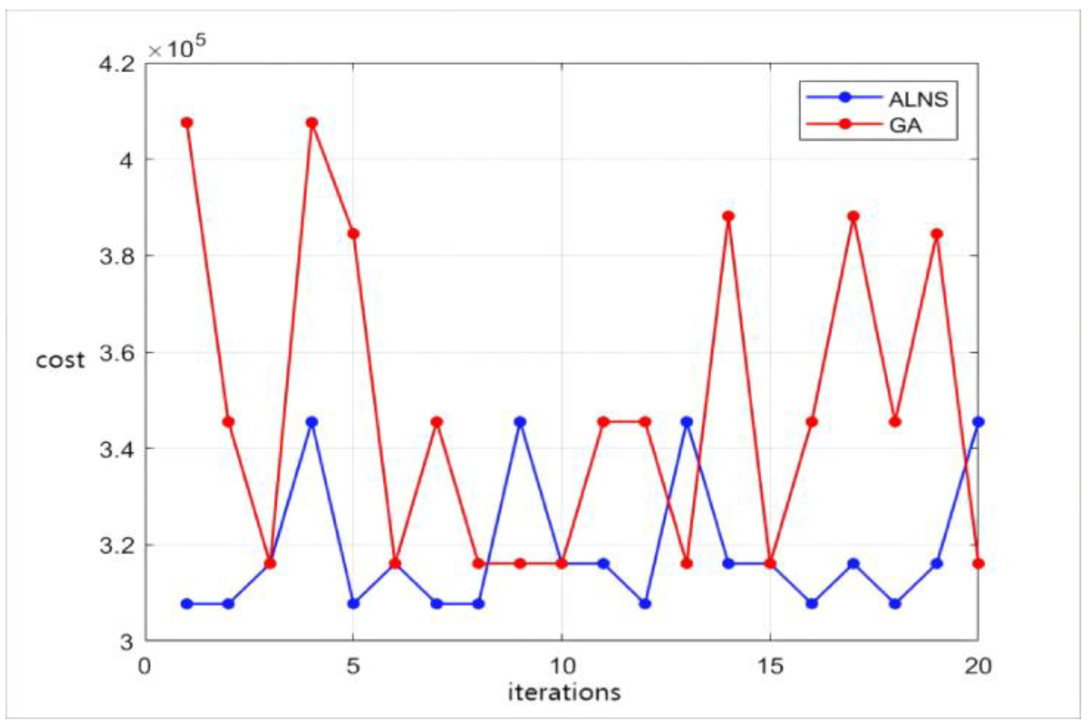 4.6. Methodological Enhancements of the Improved ALNS Algorithm