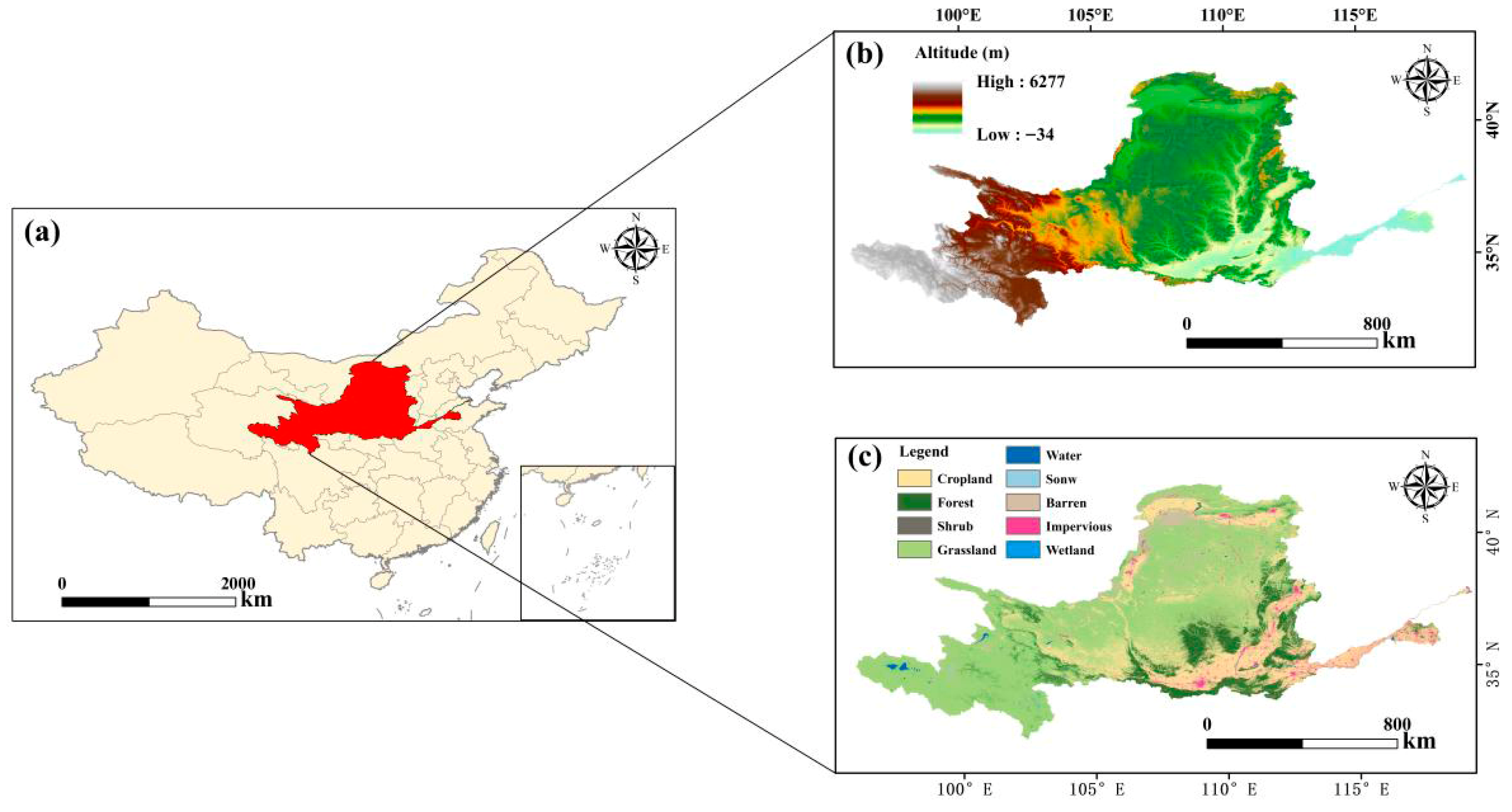 | Cropland | Forest | Shrub Land | Grassland | Water | Snow/Ice | Bare Land | Built-Up Land | Wetland | ||