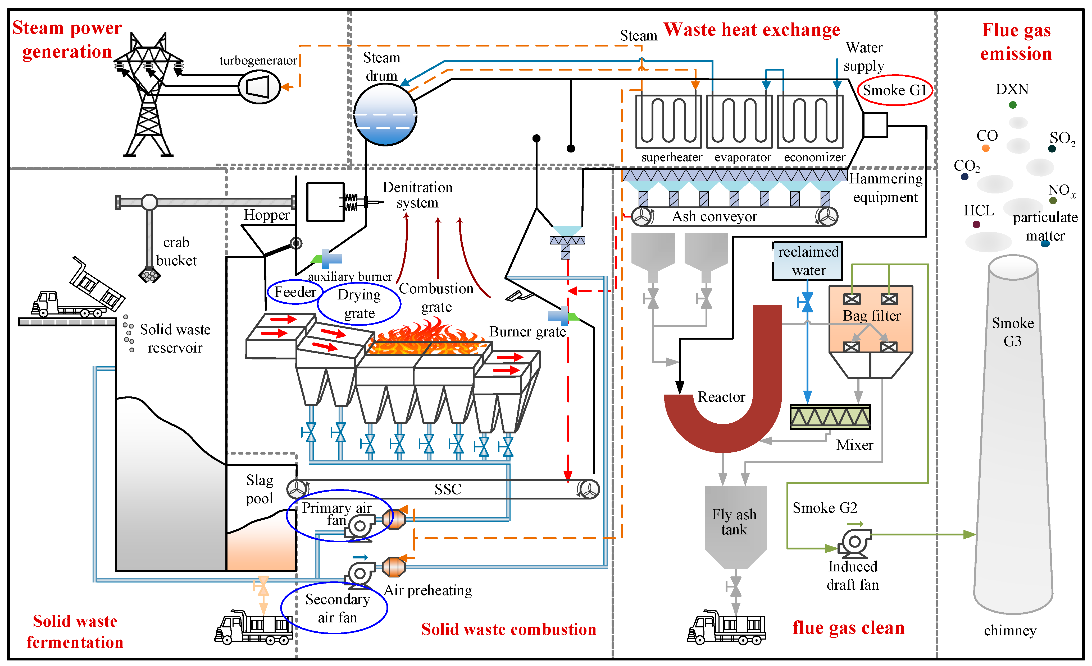 - Huang, W.; Meng, X.; Qiao, J. Dynamic Collaborative Optimization Method for Municipal Solid Waste Incineration Process. Sci. Sin. 2025, 55, 1200–1220. [Google Scholar] [CrossRef]