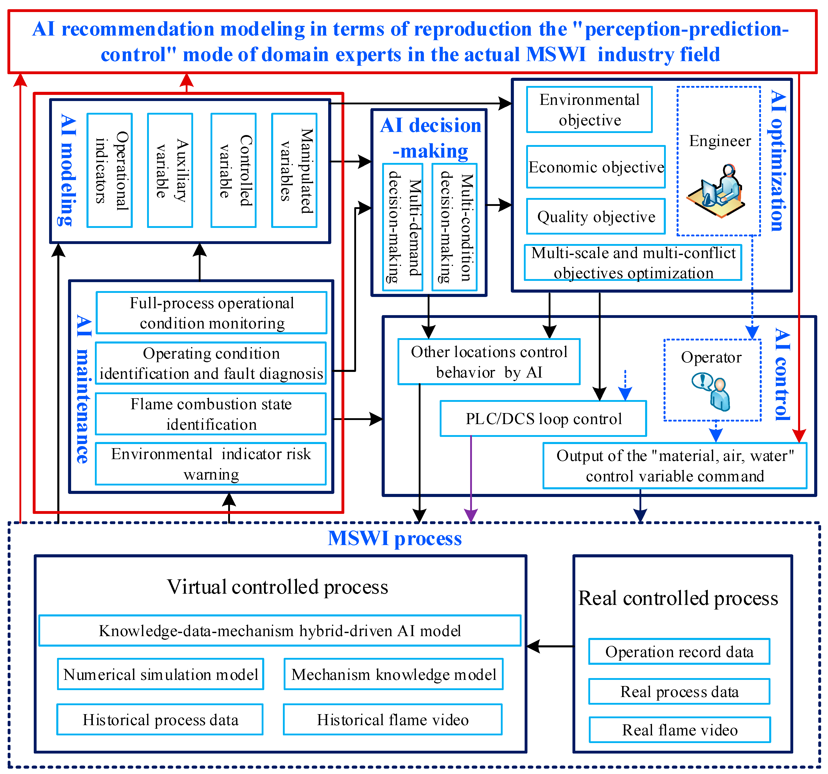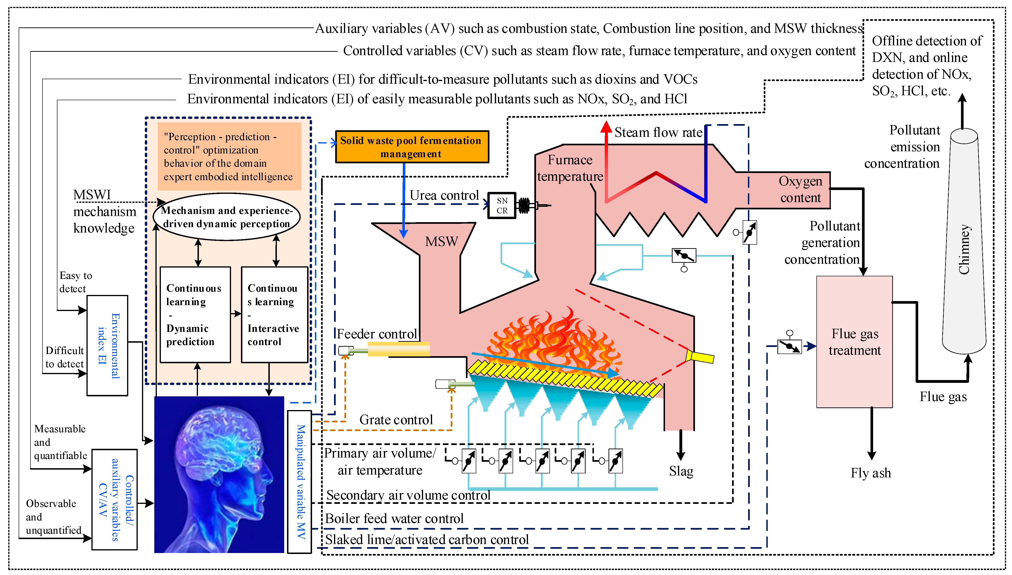 - Tang, J.; Xia, H.; Yu, W.; Qiao, J. Research Status and Prospect of Intelligent Optimization Control in Urban Solid Waste Incineration Process. Acta Autom. Sin. 2023, 49, 2019–2059. [Google Scholar]