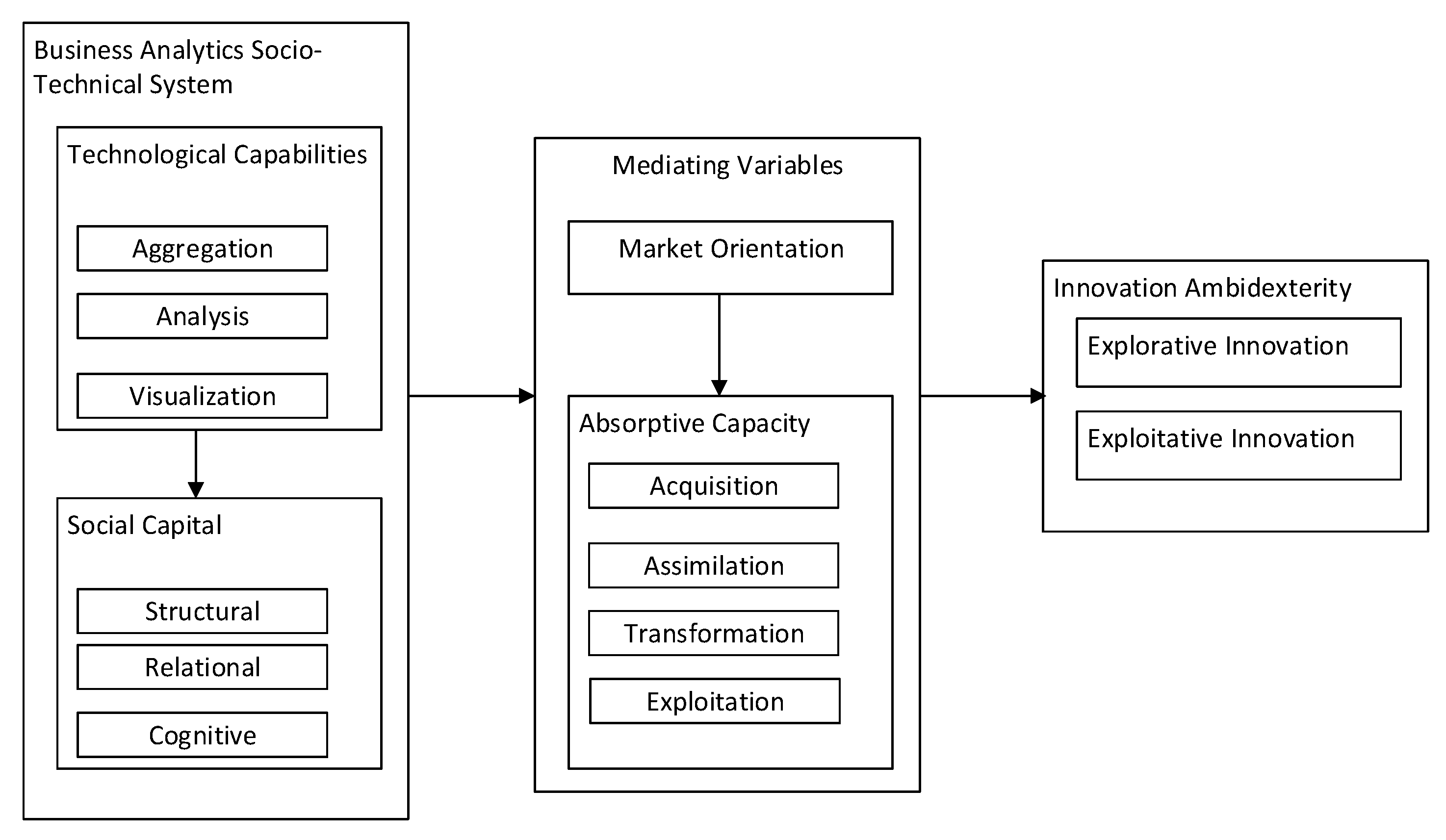 Business Analytics Socio-Technical Perspective in Driving Market Orientation and Absorptive Capacity: Its Impacts on Innovation Ambidexterity