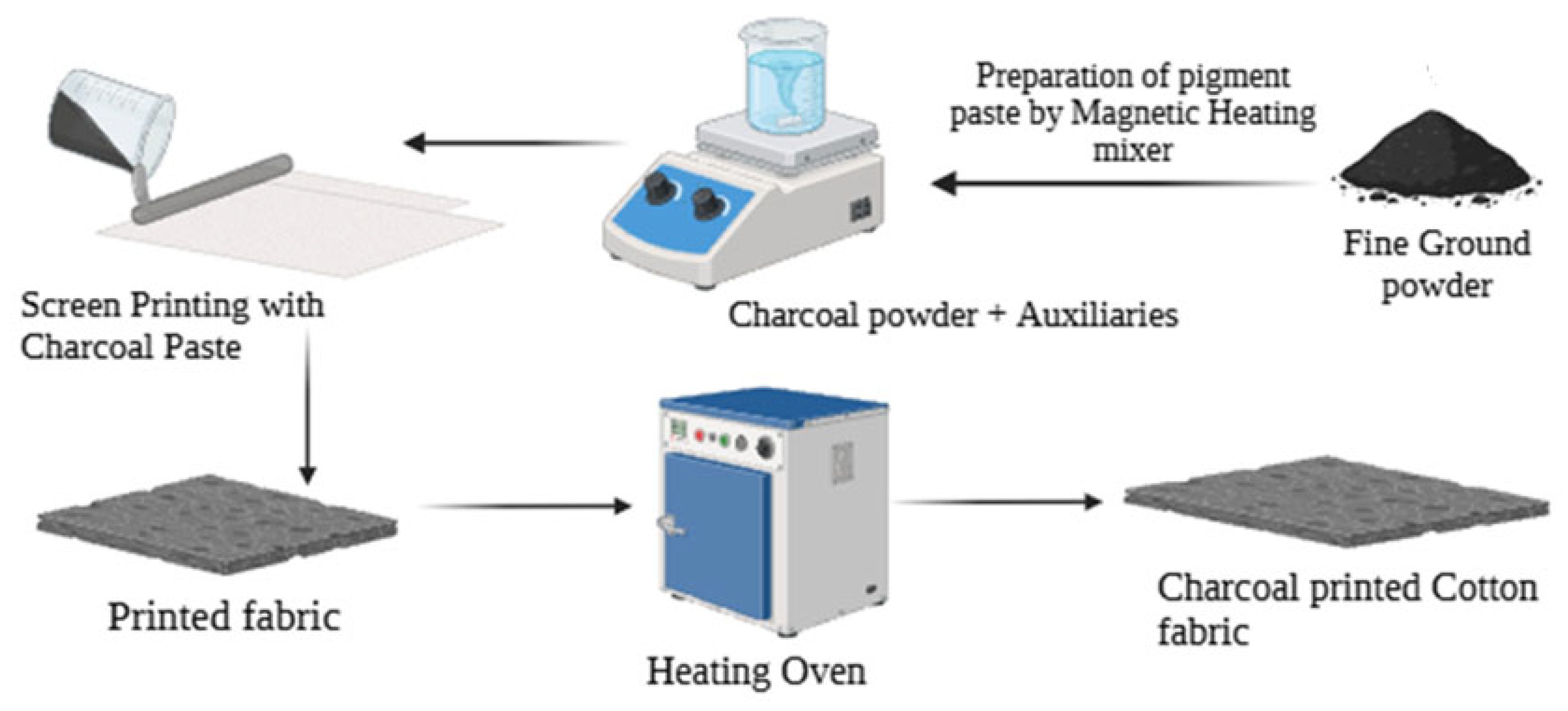 APA StyleRizwan, M., Khan, I. A., Javed, K., Bibi, N., Sarkar, A., Morshed, M., Khan, A., Shafi, A., Asif Khan, R. M., & Hussain, F. (2026). Fabrication of Acacia-Waste-Charcoal-Printed Cotton Fabric for the Development of Functional Textiles—A Sustainable Approach. Sustainability, 18(5), 2325. https://doi.org/10.3390/su18052325