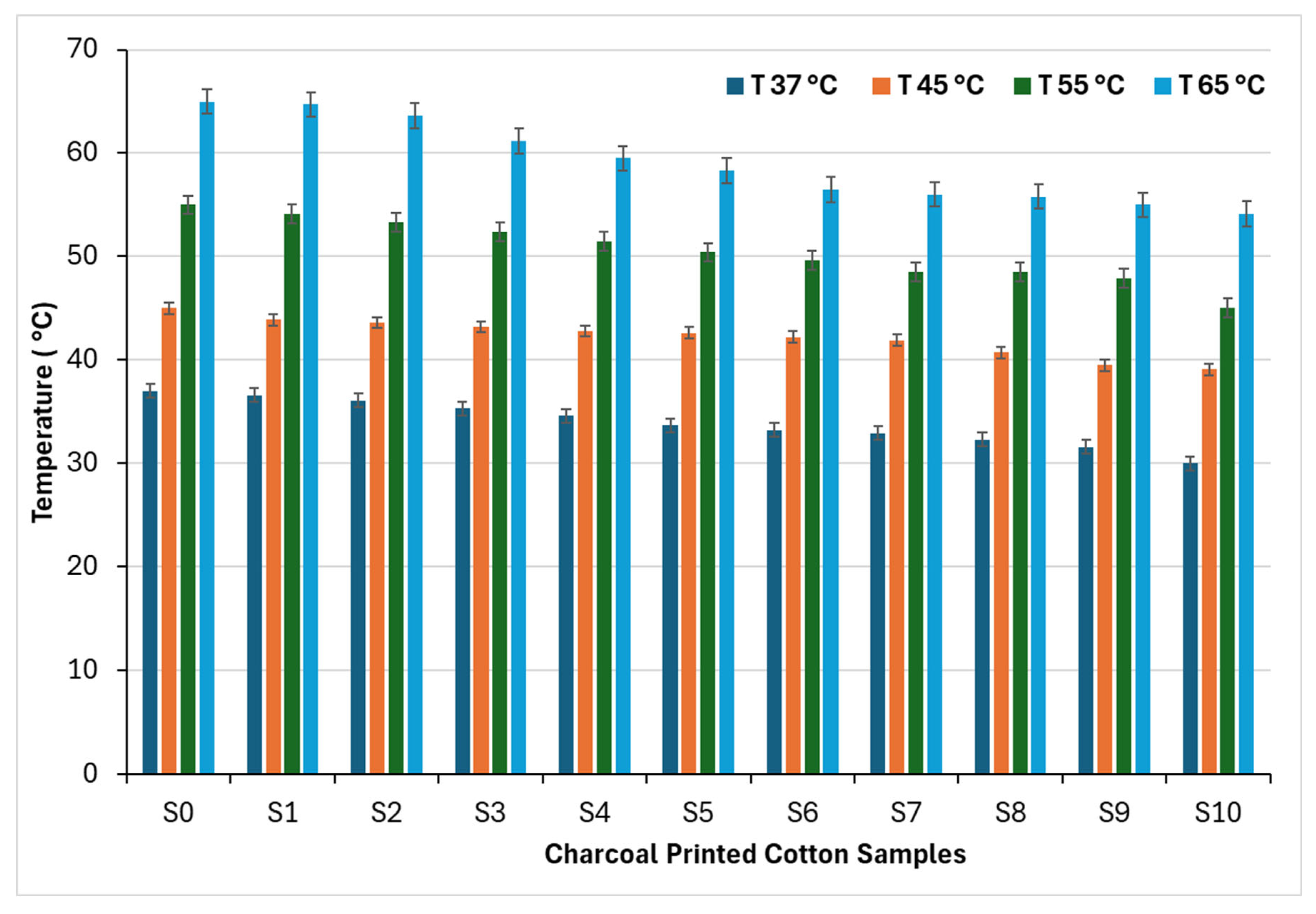 3.4. Effect of Acacia Charcoal Concentration on the Thermal Insulation of Cotton Fabric