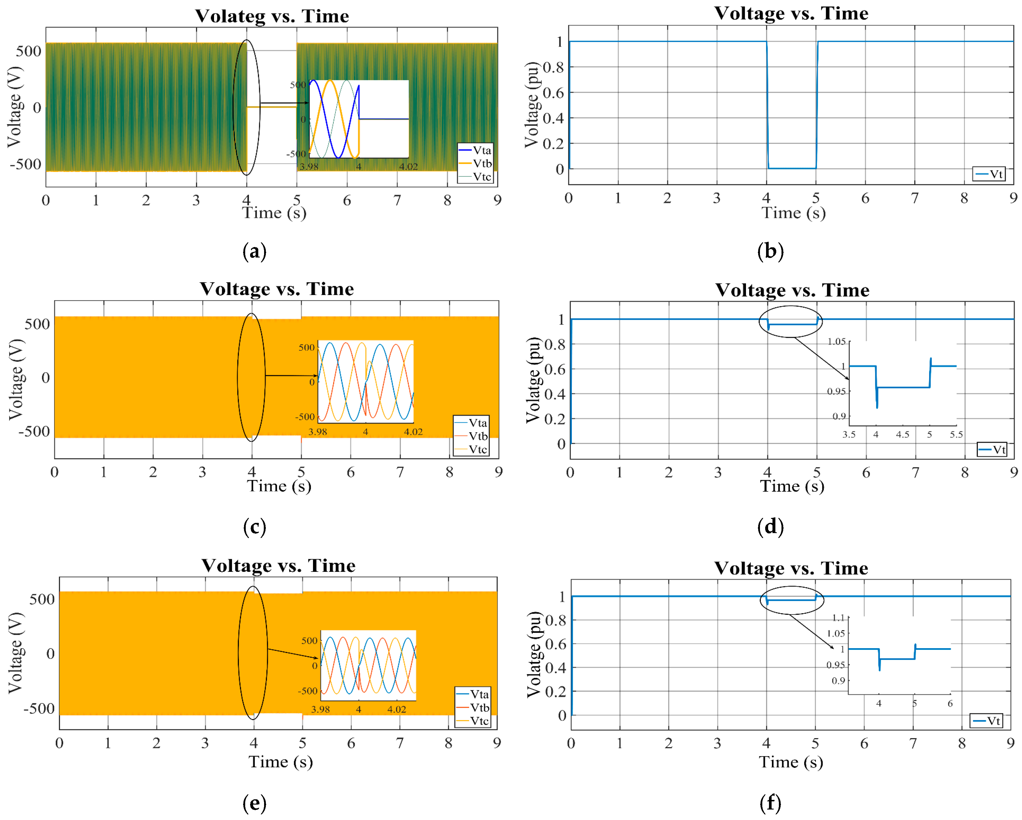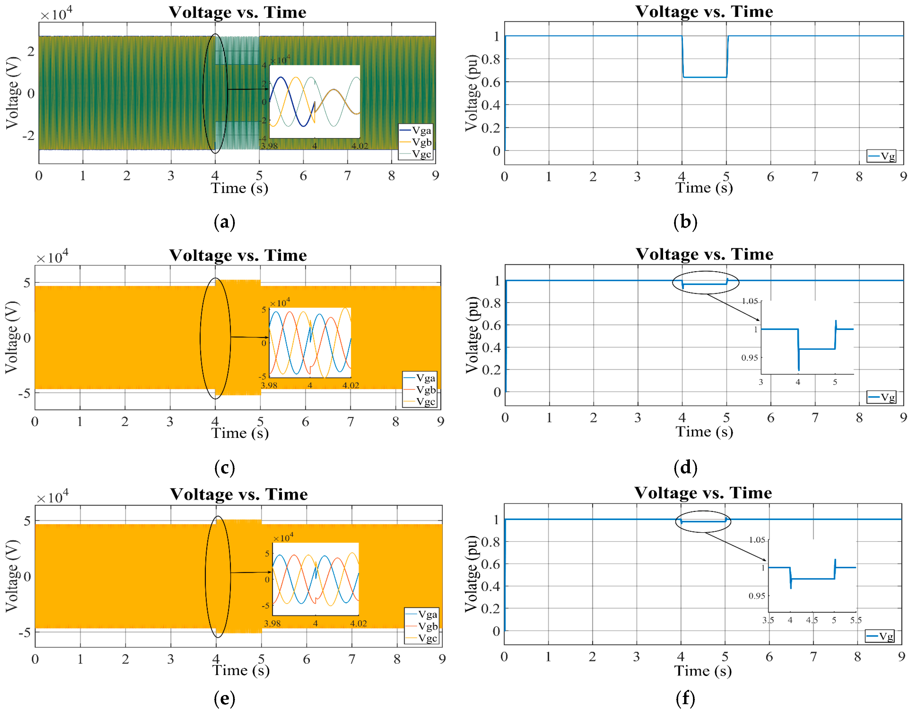 | Aspects | Fault Type | DC-Link Voltage | Grid Voltage Recovery | Inverter Voltage Recovery | Reactive Power Injection | Voltage Sag W/o Control | DC Overshoot with Controller | |