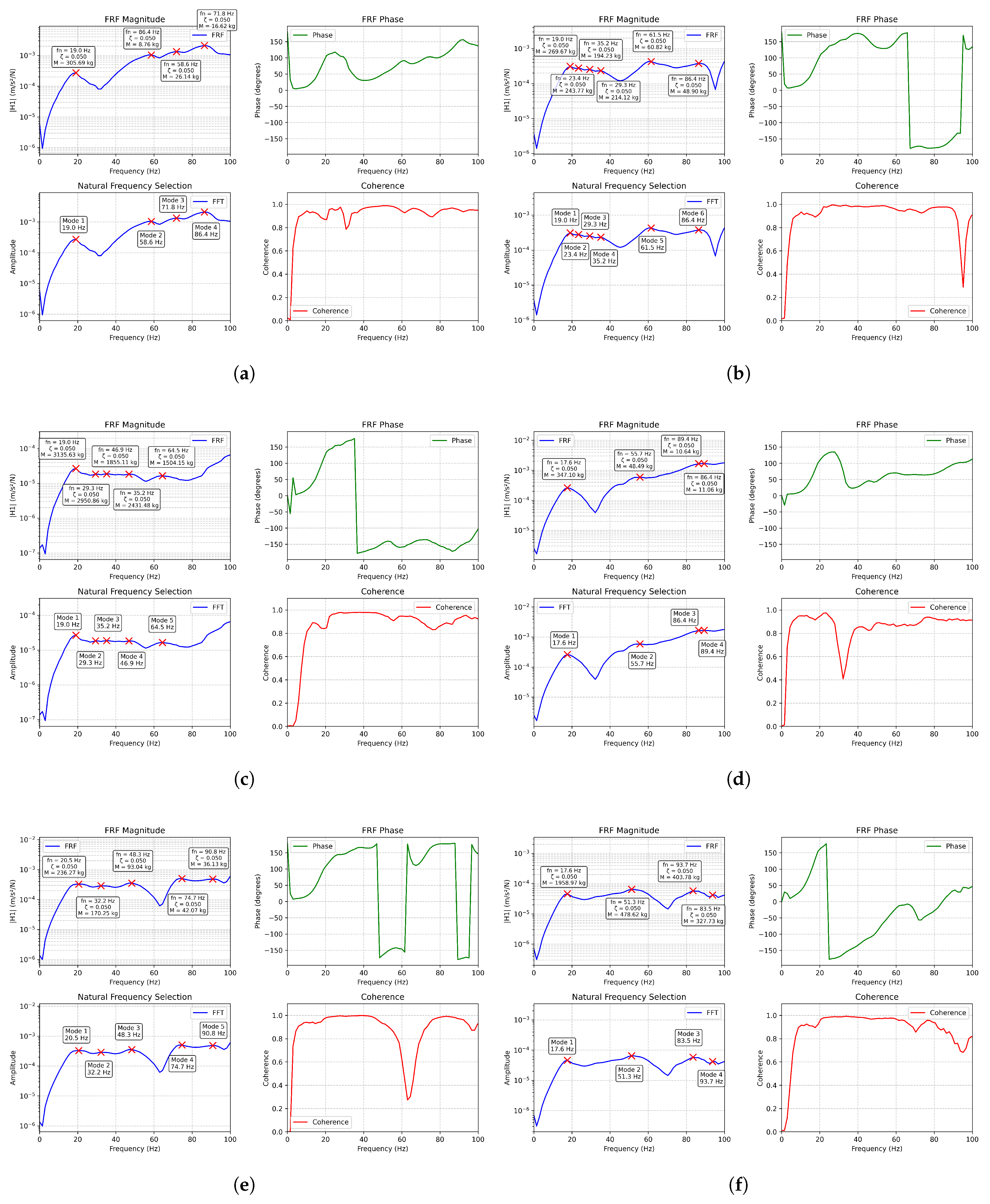 - Marinone, T.; Moya, A. Comparison of FRF Correlation Techniques. Conf. Proc. Soc. Exp. Mech. Ser. 2015, 3, 299–309. [Google Scholar] [CrossRef]