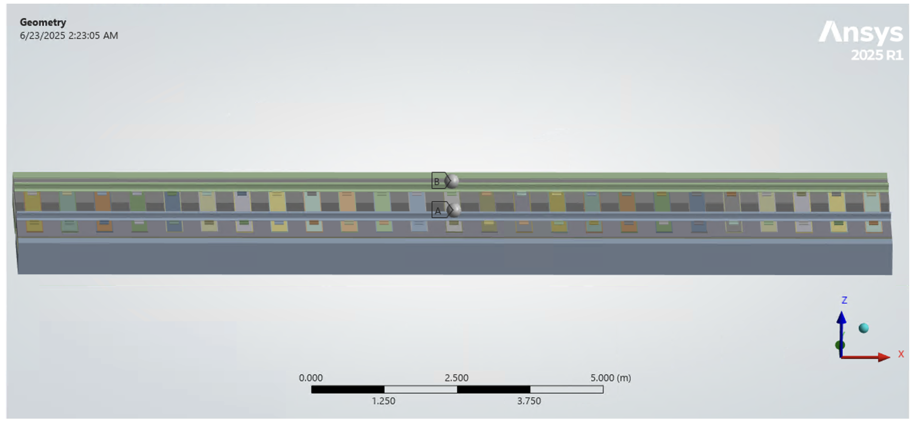 Finite Element Model (FEM) of the metro slab track in ANSYS 2025 R1.