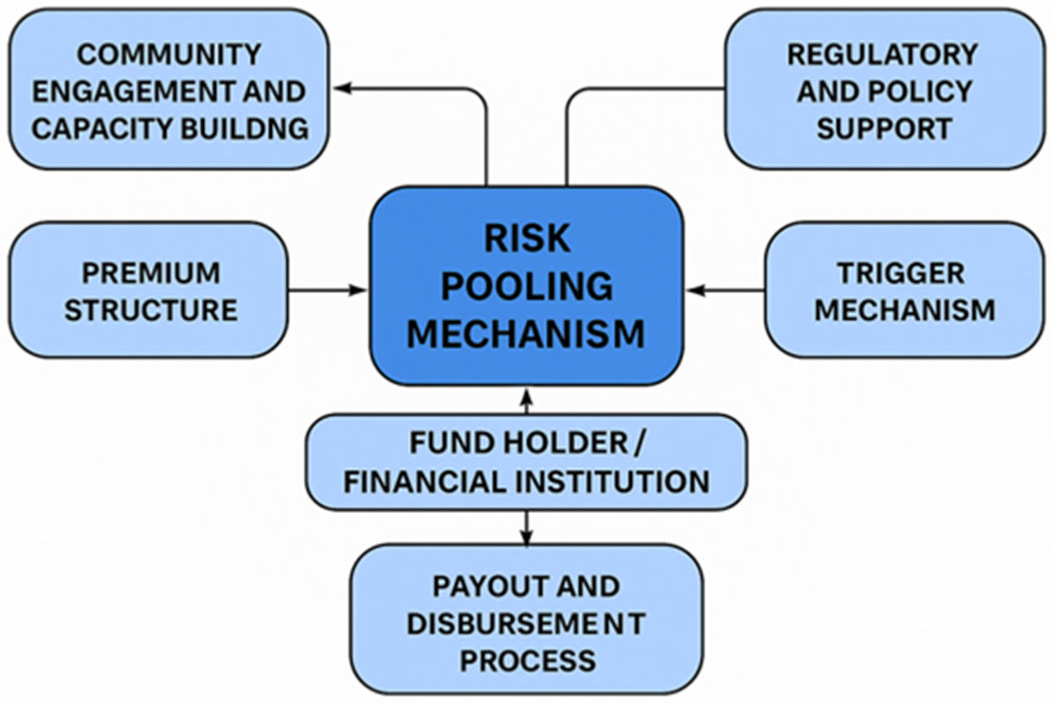 | 1 | Risk Pooling Mechanism | A collective fund to spread disaster risk in the community or across regions | Spatial agent-based model explored impact zones and potential to incorporate risk pooling geographically [37] |