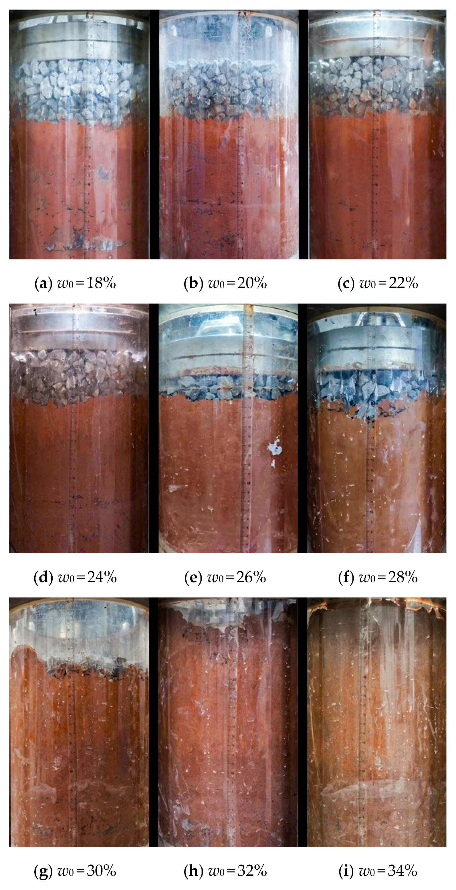 4.3. Water Content Evolution in the Fine-Grained Layer During Loading